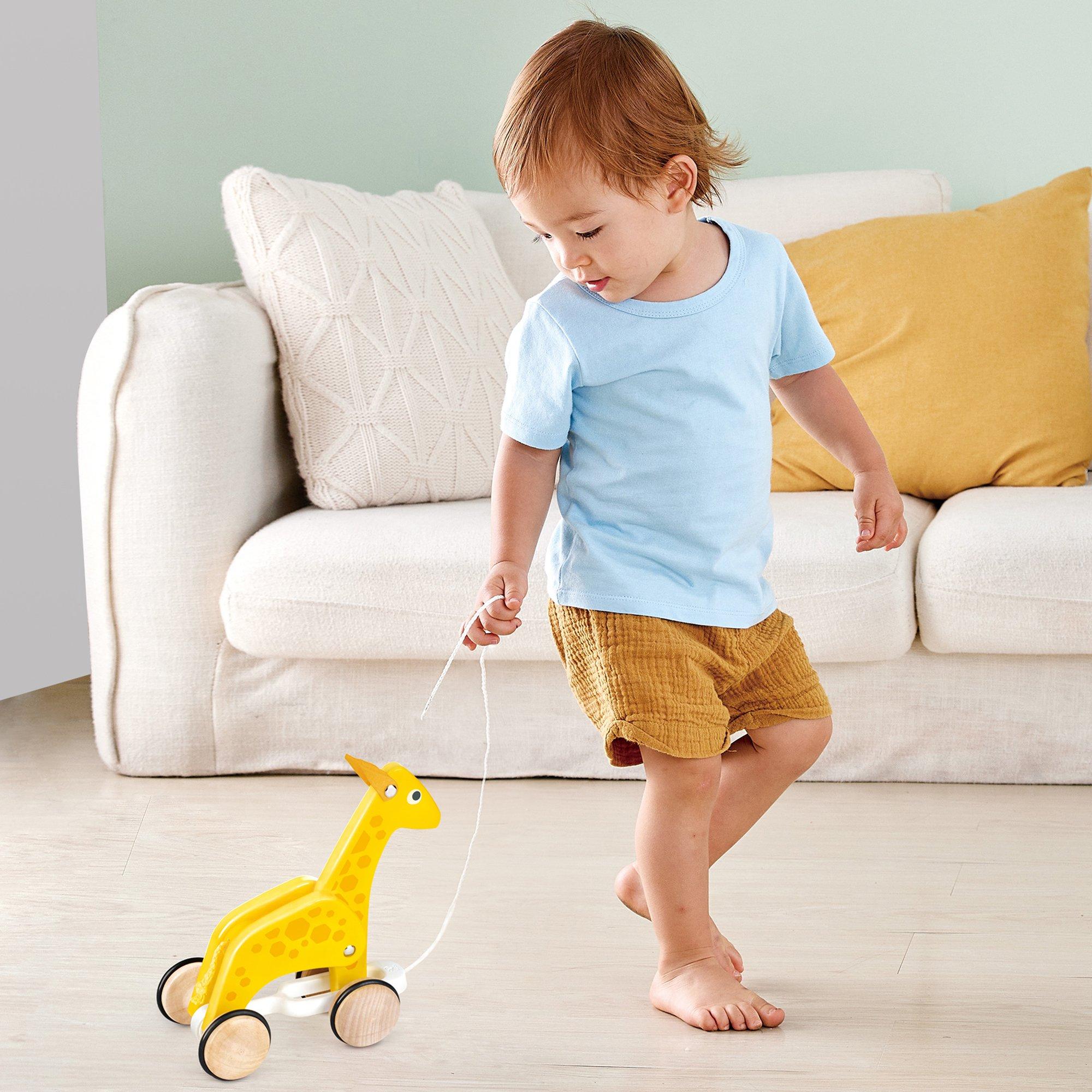 CUTE GIRAFFE CHARACTER: Make a new long-necked friend to play with around the house. Size: 187*206*102 (mm). Pull along toy. Cute giraffe character