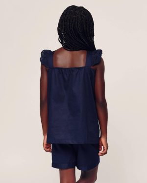 • This breezy short set has a classic relaxed silhouette, with standout touches like sweet ruffling at the shoulder. Ideal for lounging at home or spending a day in the sun.