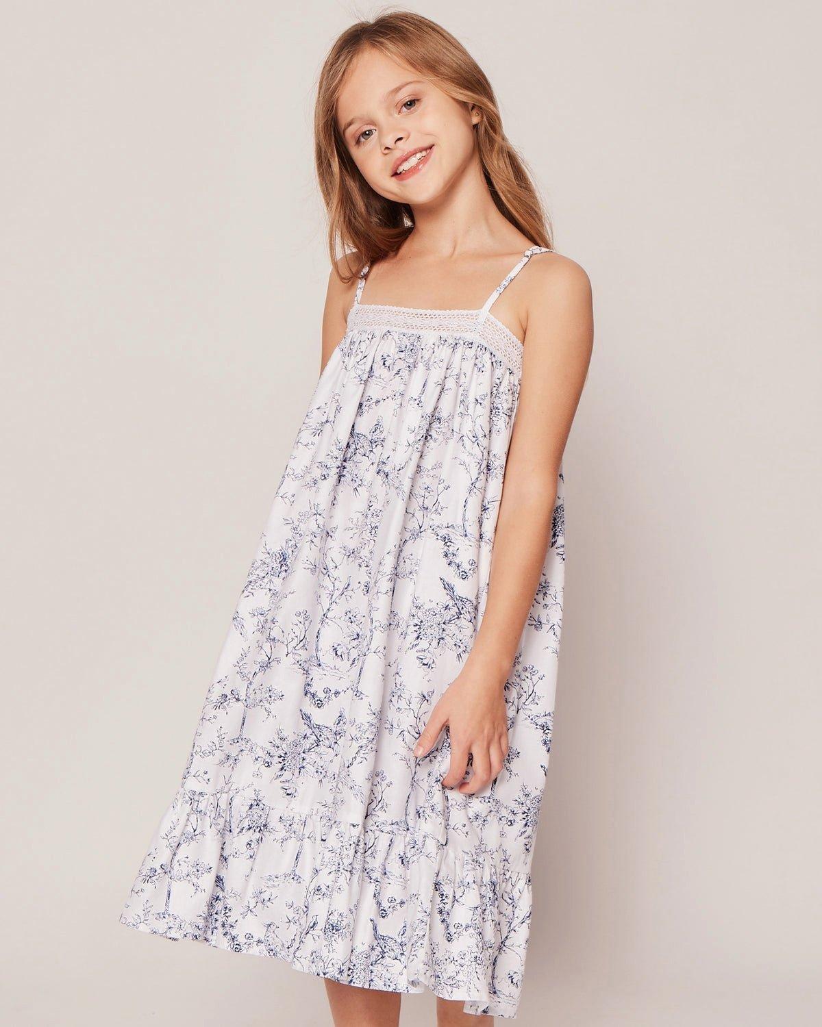 Girl’s Twill Lily Nightgown in Blue Timeless Toile