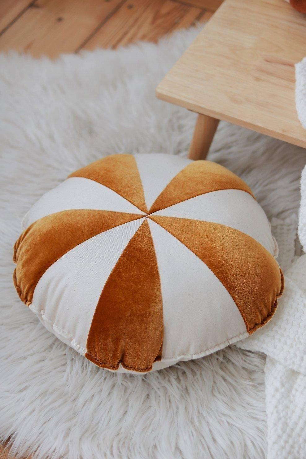Fantastic for adults and children alike because if you need to rest or take a nap, it’s best to do it on a soft velvety cushion. Everybody knows that! Decorative cushions by Moi Mili are beautiful, very comfortable and practical. They are a lovely decoration of the child’s room, making it extremely cosy and creating perfect conditions for naps and – obviously – play! PART OF THE VELVET GLOW COLLECTION Being so spectacular, it highlights both sophisticated living rooms and cosy children’s rooms. Any interior becomes splendid with our best-selling collection made of shiny, soft velvet. Whether in your living room, as a decoration for a cot or a rattan armchair: C’est chic! Make your own cushion compositions of the available patterns! A beautiful velvet shell-shaped cushion, carefully sewn from high quality peach-coloured velvet fabric with elastane that lays beautifully and shines. Super soft to touch, for the bedroom and the living room. Filled with high quality anti-allergic silicone fibre balls. You can safely wash it in a washing machine, the filling stays fluffy and elastic. Fabric: 95% polyester, 5% elastane, 33 g Dimensions: 18 x 16 in. Washing temperature: up to 86°F.No couch, chair, or bed is complete without a couple of decorative pillows to add a touch of style and a place to lay your head. <span To feel the Christmas magic is one thing! But to immediately smell the Christmas tree decorated with colourful candies and almost hear the rustling gift paper is another! But if you need to rest or take a nap, it’s best to do it on a soft snug cushion… Decorative cushions by Moi Mili are beautiful, very comfortable and practical. They are a lovely decoration of the child’s room, making it extremely cosy and creating perfect conditions for naps and – obviously – play! PART OF THE CHRISTMAS CANDY COLLECTION The cushion is part of our unique Christmas collection, which easily brings about the magic of Christmas in a cosy children’s room full of decorations, sweets and gifts. This is our sweetest collection inspired by traditional holiday decorative candies. Make your own cushion compositions of the available patterns! This patchwork candy-shaped velour cushion is sewn firmly from high quality gold velour and thick natural beige cotton. Filled with high quality anti-allergic silicone fibre balls. You can safely wash it in a washing machine, the filling stays fluffy and elastic. Fabric: 1% velour (polyester) and 1% cotton, both OEKO-TEX® certified. Dimensions: 17x12x6 in . Washing temperature: up to 86°F.Help your family celebrate the most wonderful time of the year by adding this adorable holiday-themed pillow to your home decor.