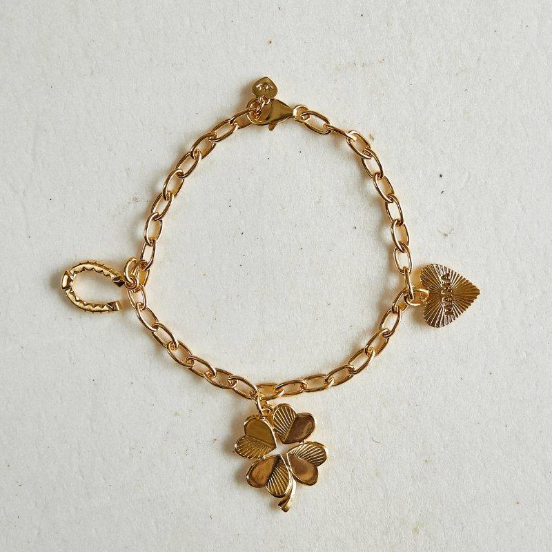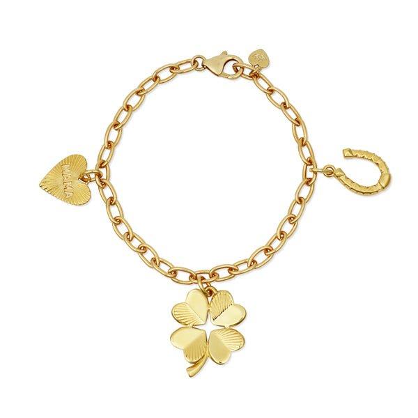 Charm details: Small Heart MAMA Charm (15mm tall, 15mm wide), Small Fortuna Horseshoe Charm (15.5mm tall, 12.5mm wide), and Small Luck and Love Clover Charm (25mm tall, 20mm wide)