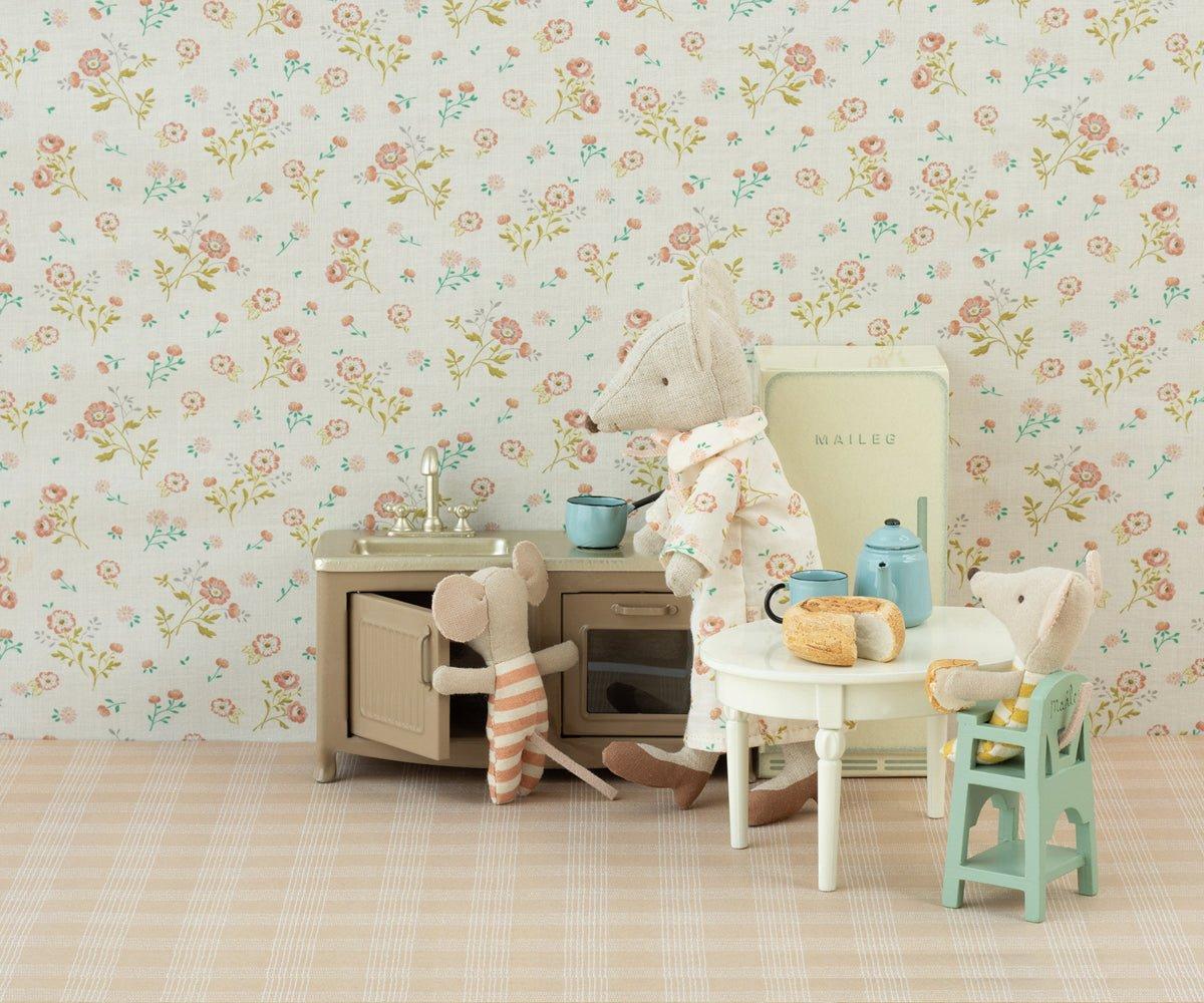 A classic Maileg accessory for baby mice. This high chair is a must have for all families with babies so the small one can participate in the meals.