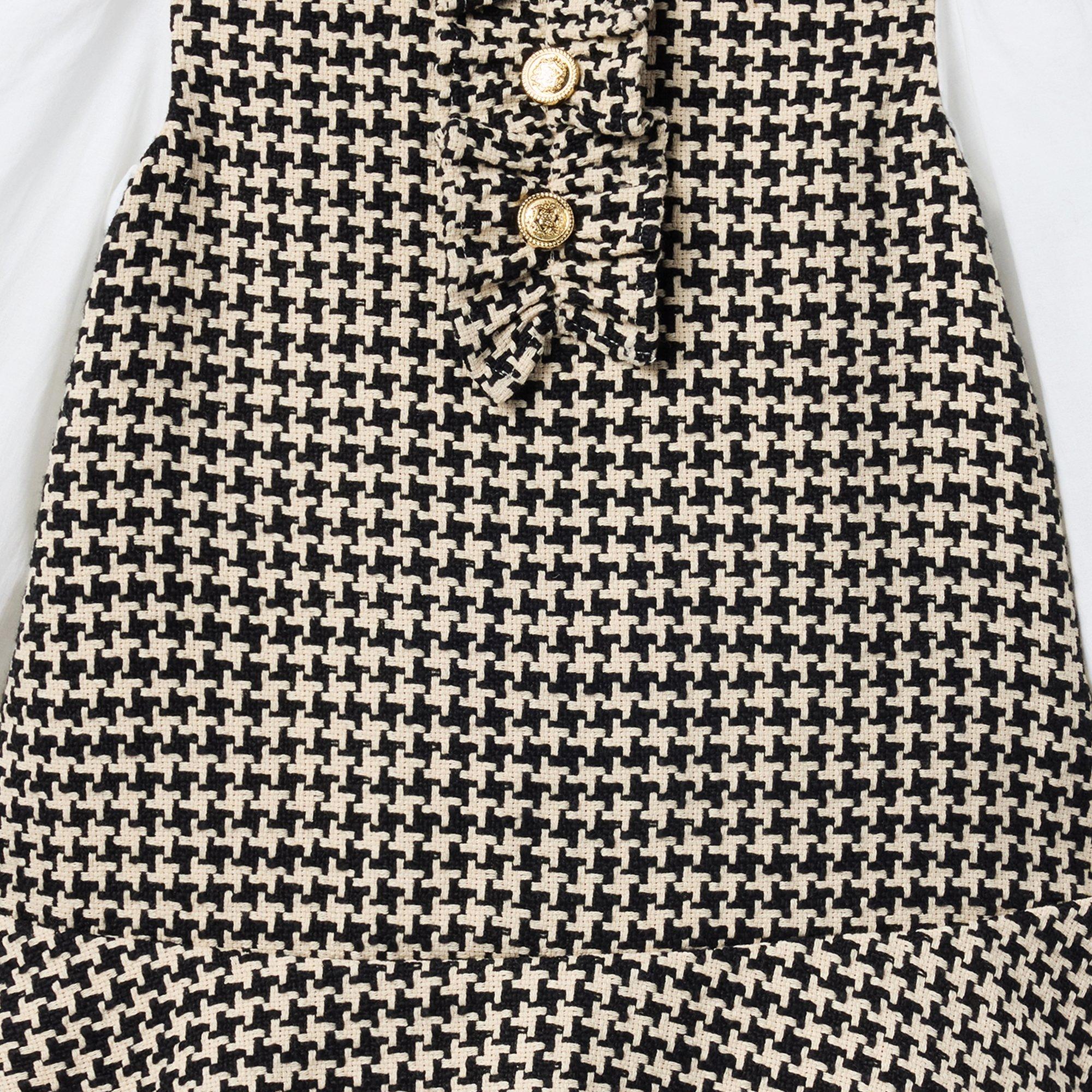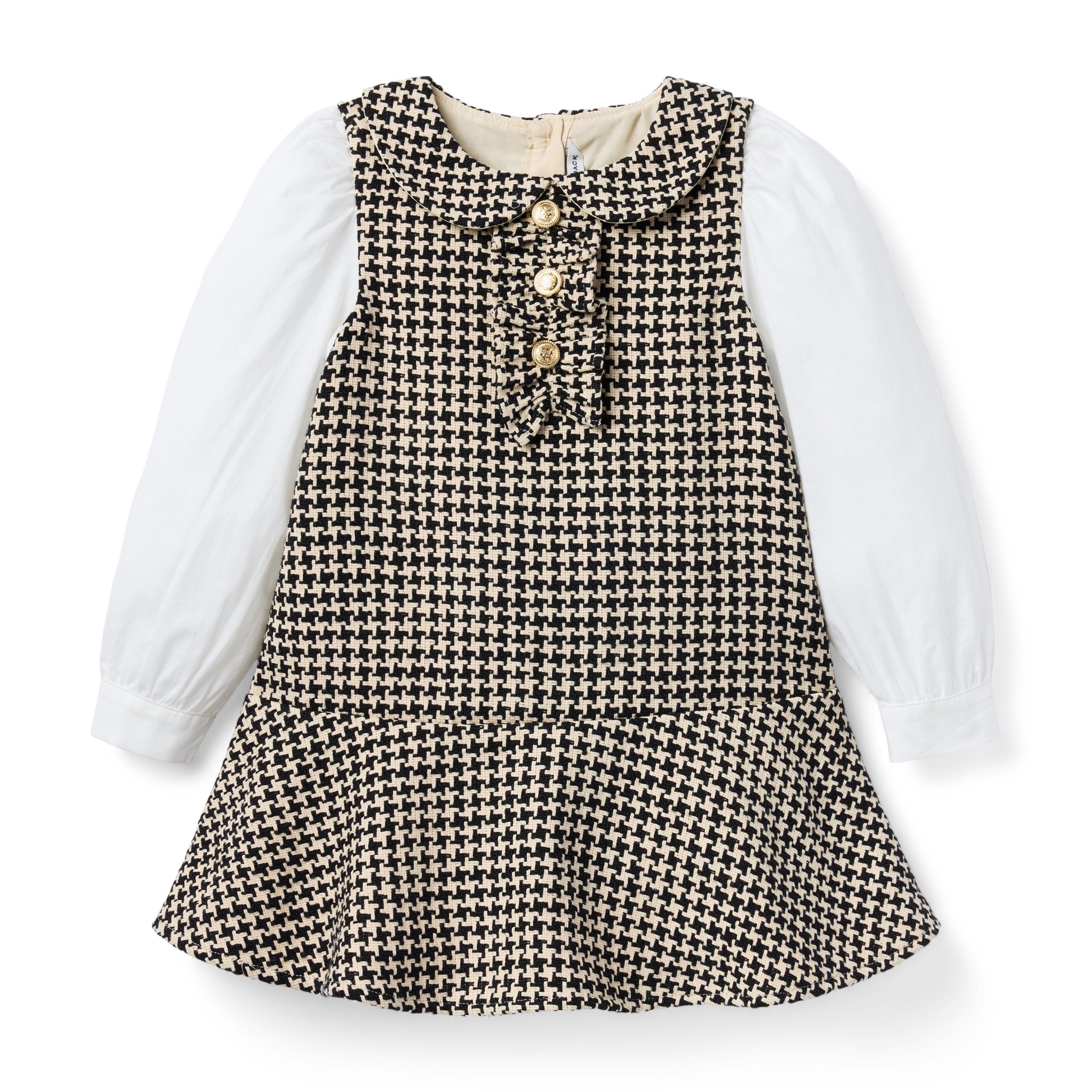 • Timeless style with a chic twist. Our houndstooth tweed dress features a classic dropwaist silhouette, gold-tone buttons and a Peter Pan collar too.