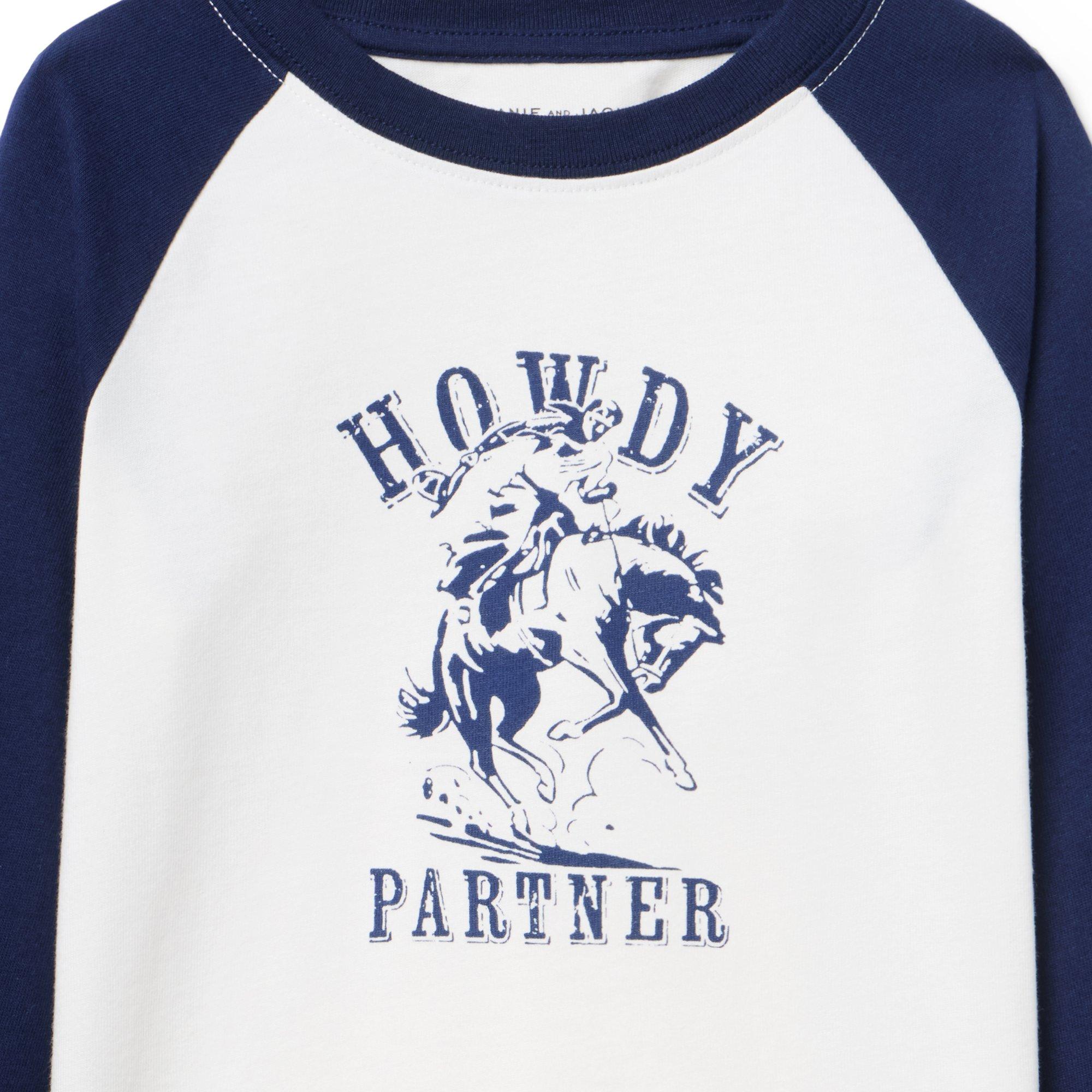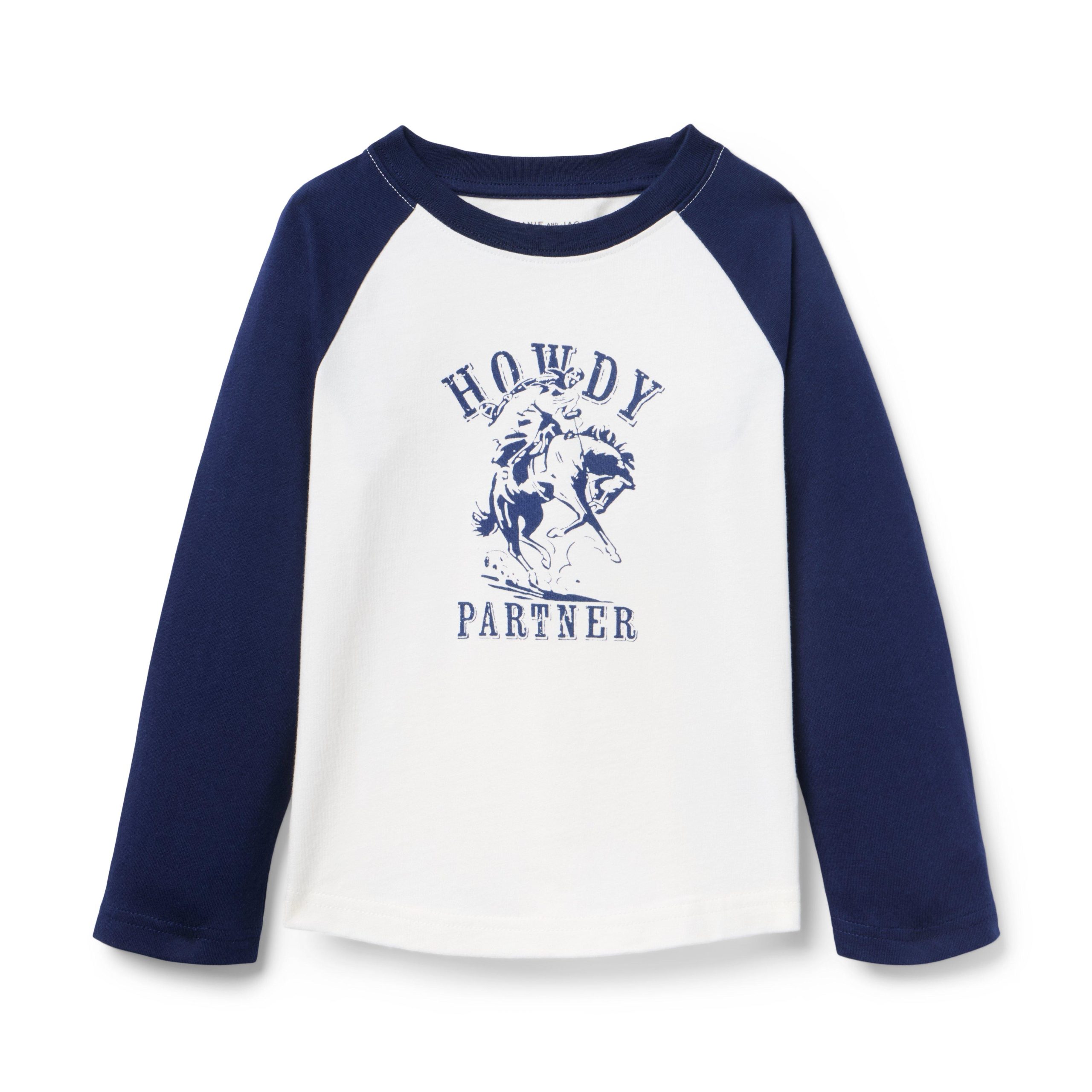 • Saddle up in style with our Howdy tee. Designed in soft cotton jersey with a screenprinted cowboy graphic, raglan sleeves and a ribbed neck.