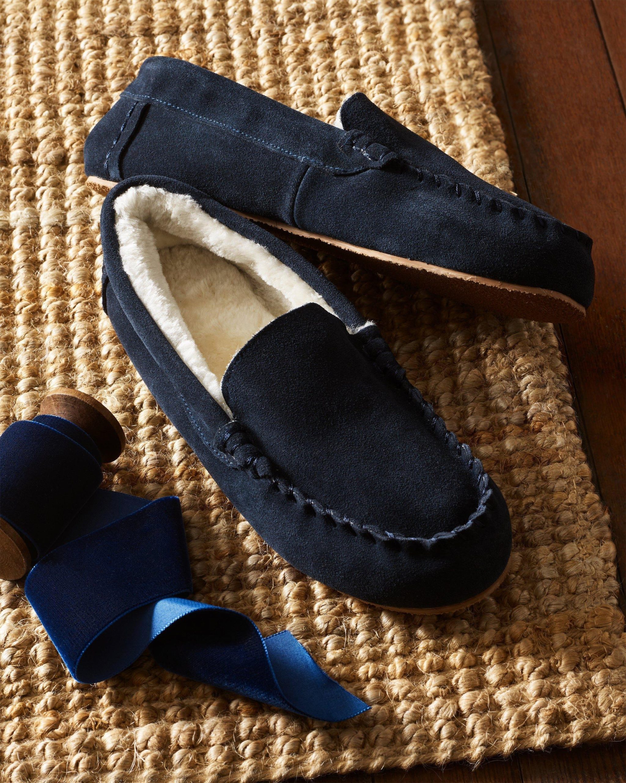 • Stay cozy in any season with these ultra-soft suede moccasin slippers. The faux fur lining keeps your feet comforted from morning to night, with a soft touch that’s like walking on clouds.