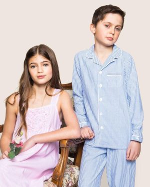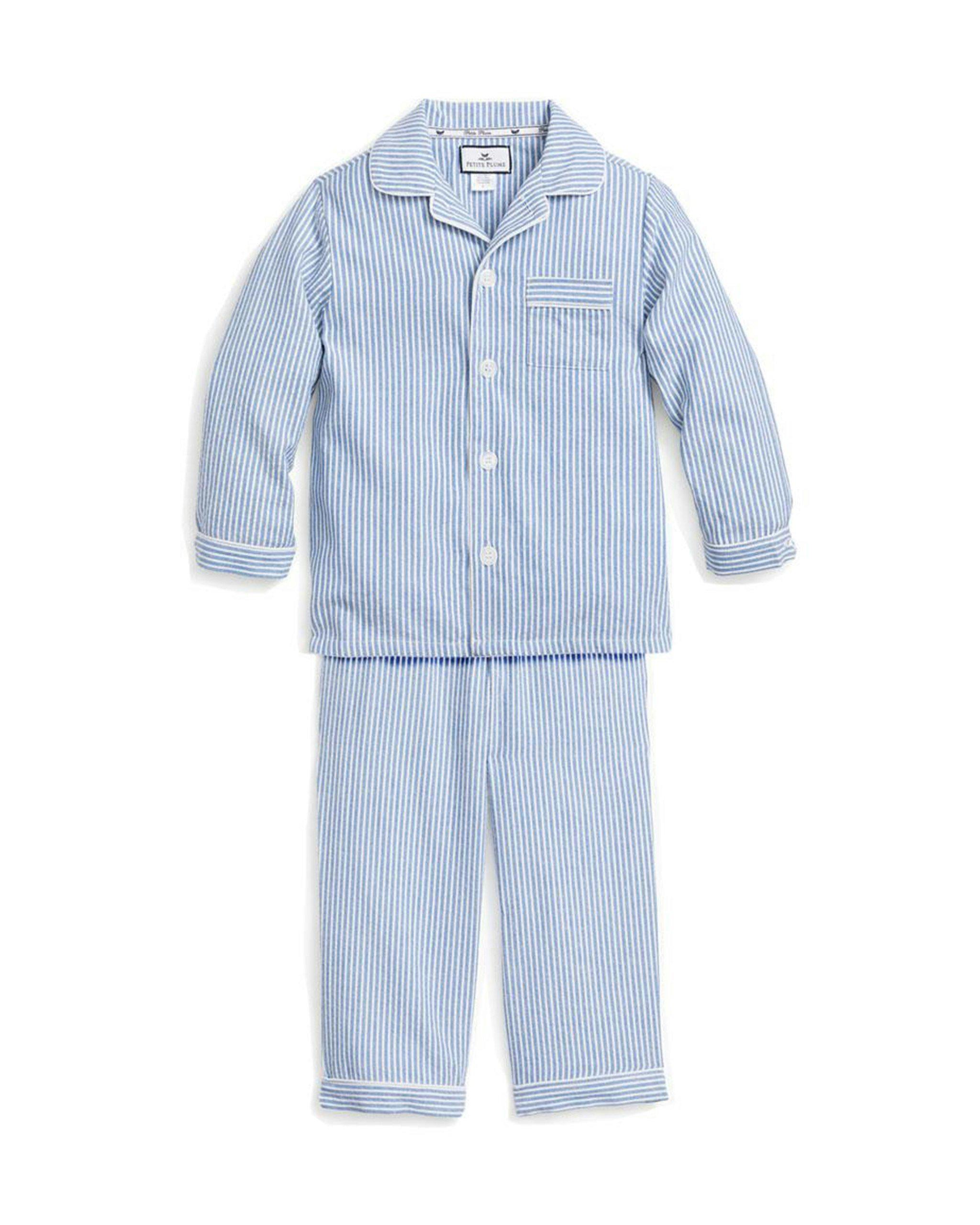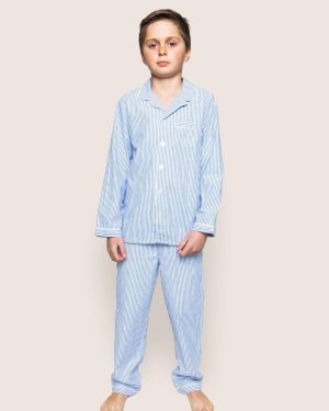 Kid’s Twill Pajama Set in French Blue Seersucker