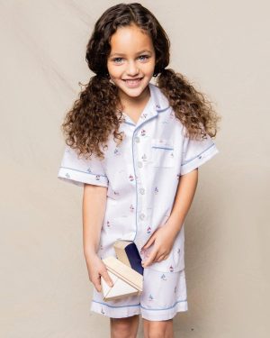 • Bateau’s colorful toy boats bobbing in the sun speak of playfulness and simplicity. Like children scattered down the sand under happy beach umbrellas. This Classic Short Set is accented with, contrast piping and finished with pearl buttons.