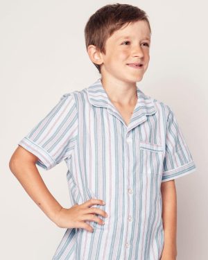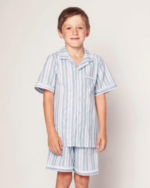 Kid’s Twill Short Pajama Set in Vintage French Stripes