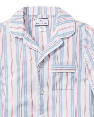 • Kid's Twill Short Pajama Set in Vintage French Stripes