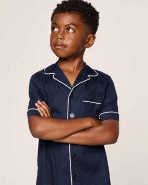 Kid’s Twill Short Sleeve Short Pajama Set in Navy