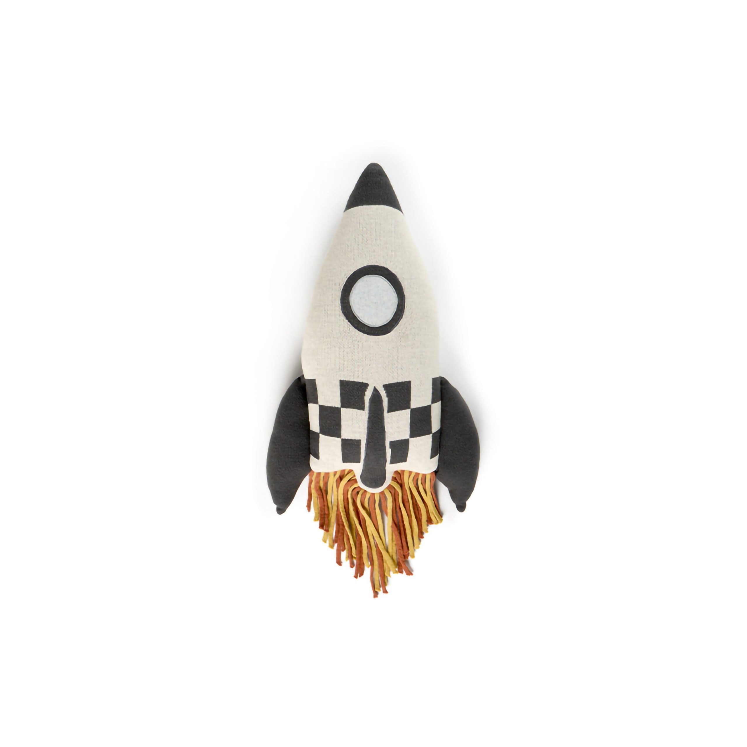 Take off into comfort and style with the Knitted Cushion Rocket! This cushion is knitted in natural and dark grey colors with blue details and colorful long fringes that evoke the look of fiery blasts. Crafted from high-quality cotton, it offers a cozy feel, perfect for snuggling up or adding a space-themed accent to any room.
