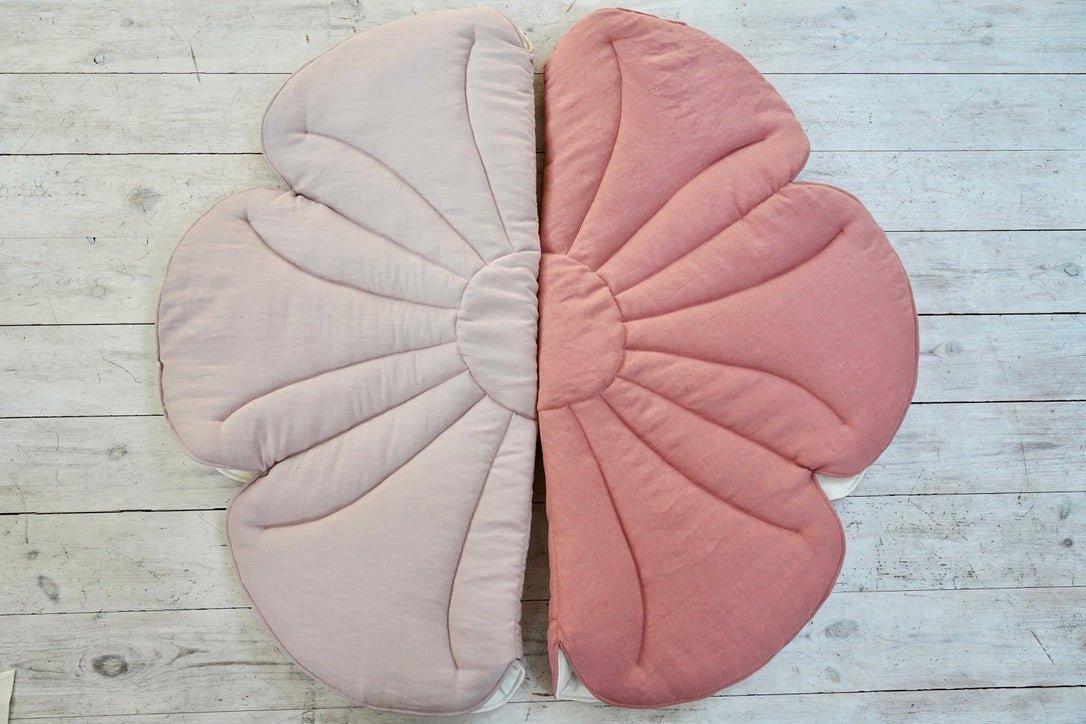 • This adorable playmat is a comfy and stylish addition to any kids’ playroom or nursery. Great for playtime, outdoor picnics,  daydreaming in a teepee, or even hanging on a wall! Create an entire cozy nook by matching this mat with our cushions.Our fluffy flower-shaped mat is sewn firmly from linen and thick natural cotton. The muted tone is inspired by the natural colors of plants making it especially compatible with light, pastel interiors. Durable and double-sided, the mat is filled with thick, antiallergic polyester material.Fabric: Linen and cotton OEKO-TEX® certified. Washing temperature: Up to 86°F. Size: 43×43 in. Thickness: 1 in.