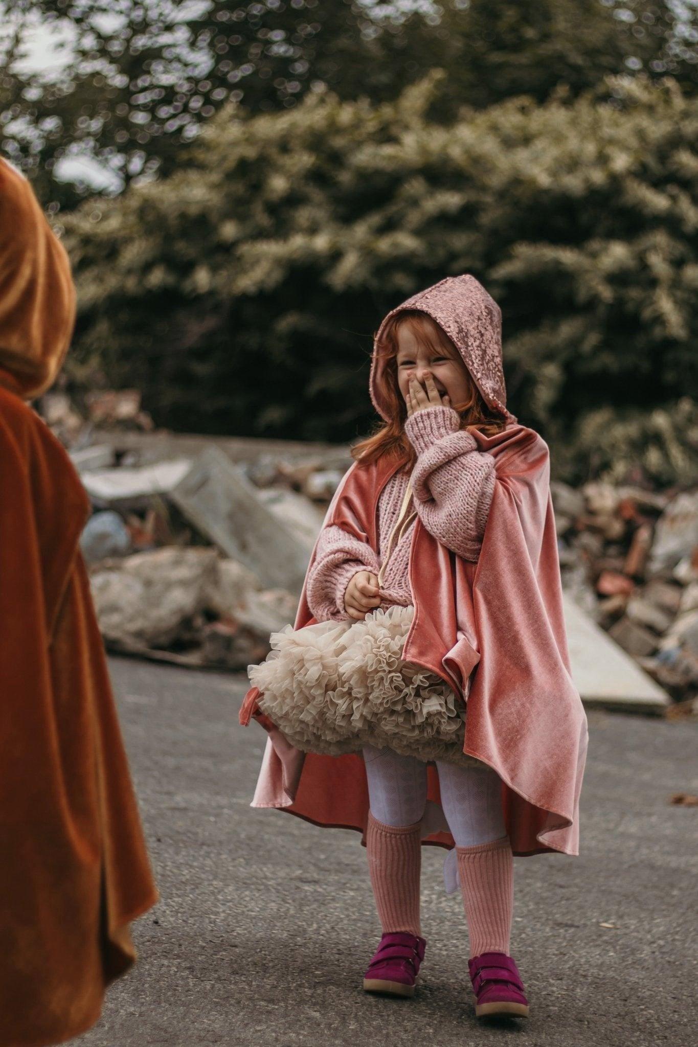 There is no way of knowing who your little one becomes today and which fantastic adventures he or she will take part in. That is exactly why you should prepare in advance for the roles of king, and queen, and dragon, and witch, and knight – to name just a few! Costumes are a must-have for theatre games, shows, costume balls, birthday parties and numerous photo shoots. A cape is a must-have if you want to play a queen, a sorceress, a fairy, a warlock, or want to go for a masked ball or trick-or-treating on Halloween. Simply put, it is essential for so many roles! You just don’t want to take it off! PART OF THE MAGIC STORIES COLLECTION Magic does not come just like that! It is obvious for all fairies and wizards. Casting magic spells requires suitable equipment such as magic capes, crowns, hoods and wands. Since every land has its own magic rules, you need to be prepared for virtually anything. Take our magic cape and create a sorceress’ or wizard’s set! A cape with a deep hood, made of soft plum velour. Great as a costume for a ball, Halloween or carnival. As it often becomes a permanent part of the outfit, it was provided with arm holes to facilitate play and daily activities Velour fabric with sequins. Length measured from the hood: 24 in front, 25.5 in back. Hood height: 13 in. Suggested size between 43 and 53 inLength (measured from the hood): 24 in front, 25.5 in back.Hood Height: 13 in.Suggested child’s height is between 43 and 53 in.