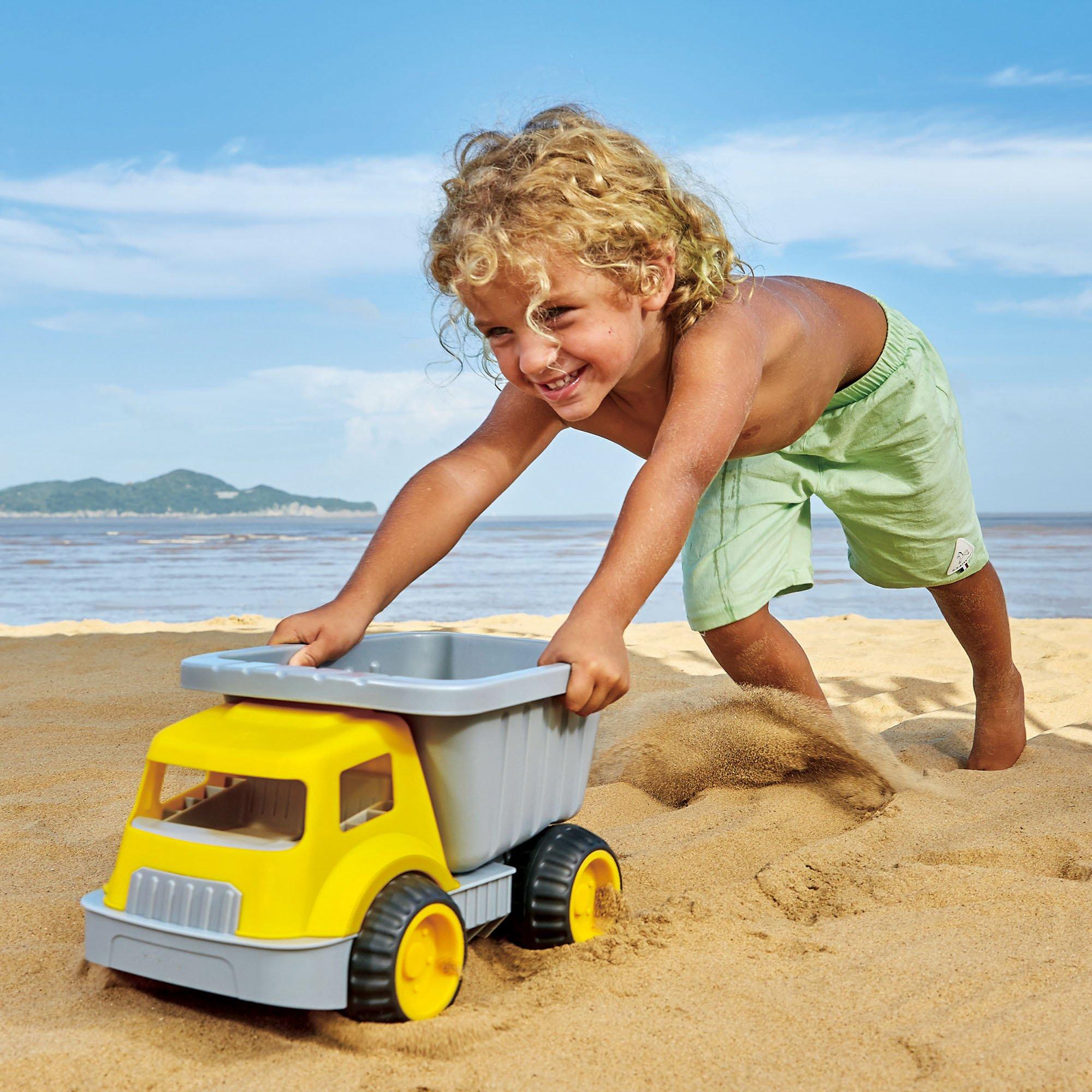 • LOAD & TOTE DUMP TRUCK – Load, tote, dump and repeat to create the ultimate sand castle project. Count how many loads of water or sand are needed to fill a hole or build a castle. Kids can fill up the construction truck and push it to their destination. Great for indoor & outdoor play. Large construction vehicle sand toy. Manufactured with high quality materials and finished with non-toxic child-safe paints making them extremely durable. Item Weight: 2 lbs, Product Dimensions (L x W x H): 14.4 x 8.9 x 8.3 inches. Adult Assembly Required: No