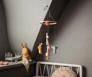Lullaby friends is a collection with beautiful baby items. This mobile is perfect for the baby to look at from the bed or from the nursery table. The animals are made in soft fabrics with unique prints and are packed in a beautiful gift box.