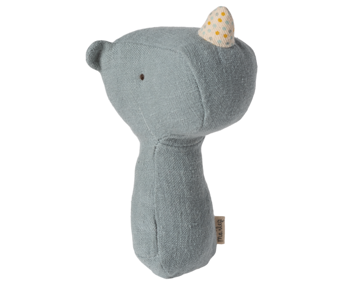 Lullaby friends is a collection of beautiful items for babies. This rattle is perfectly shaped for a small hand and has a stimulating rattle sound. It is made in soft fabrics with unique prints and packed in a beautiful gift box.