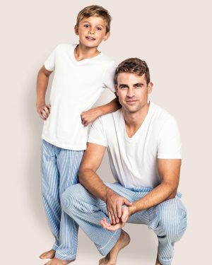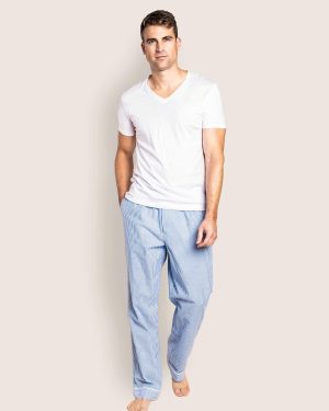 Men’s Twill Pajama Pants in French Blue Seersucker