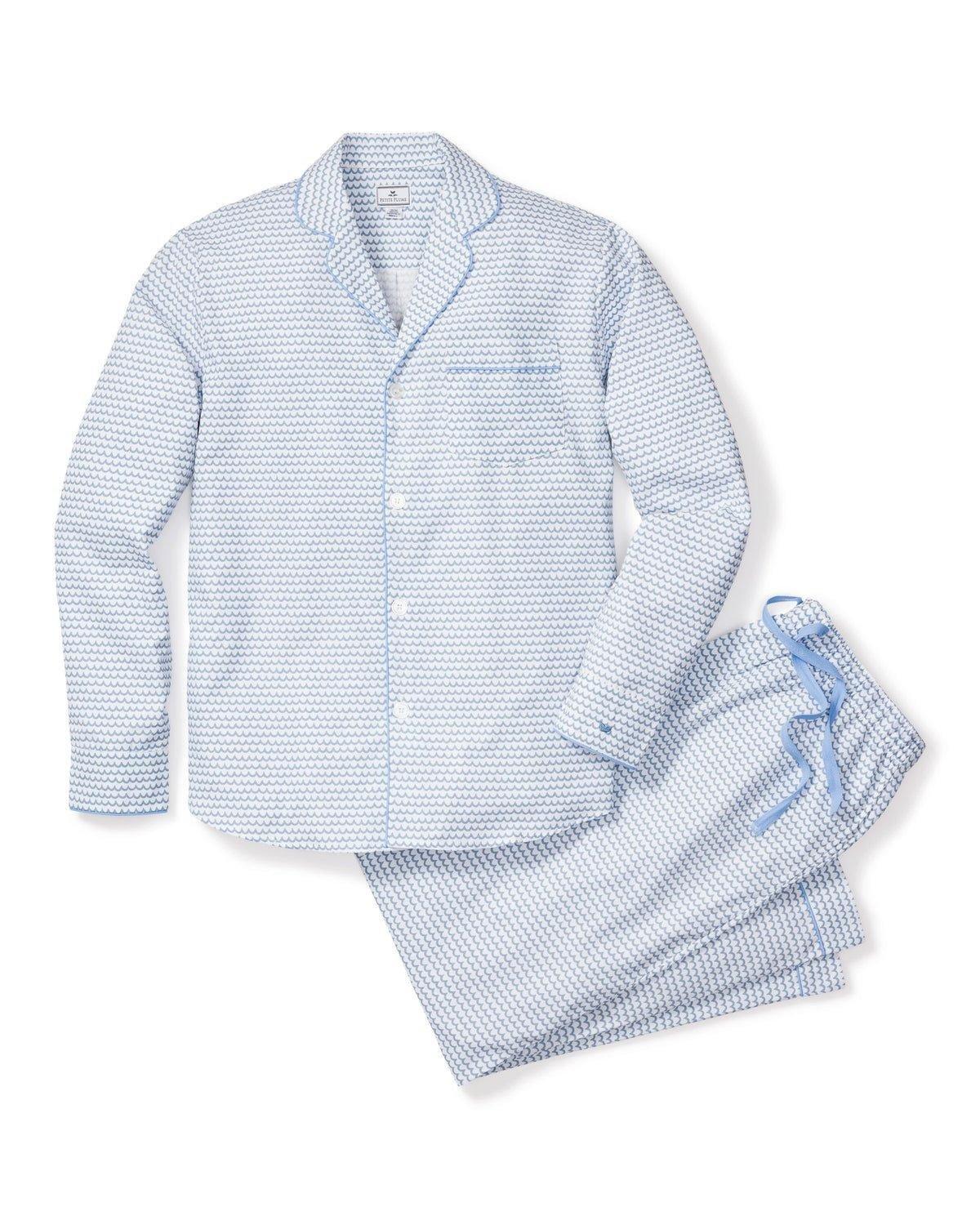 A print paying tribute to the color, scent, sound, and rhythm of the sea. This classic pajama set is accented with contrast piping and finished with pearl buttons.