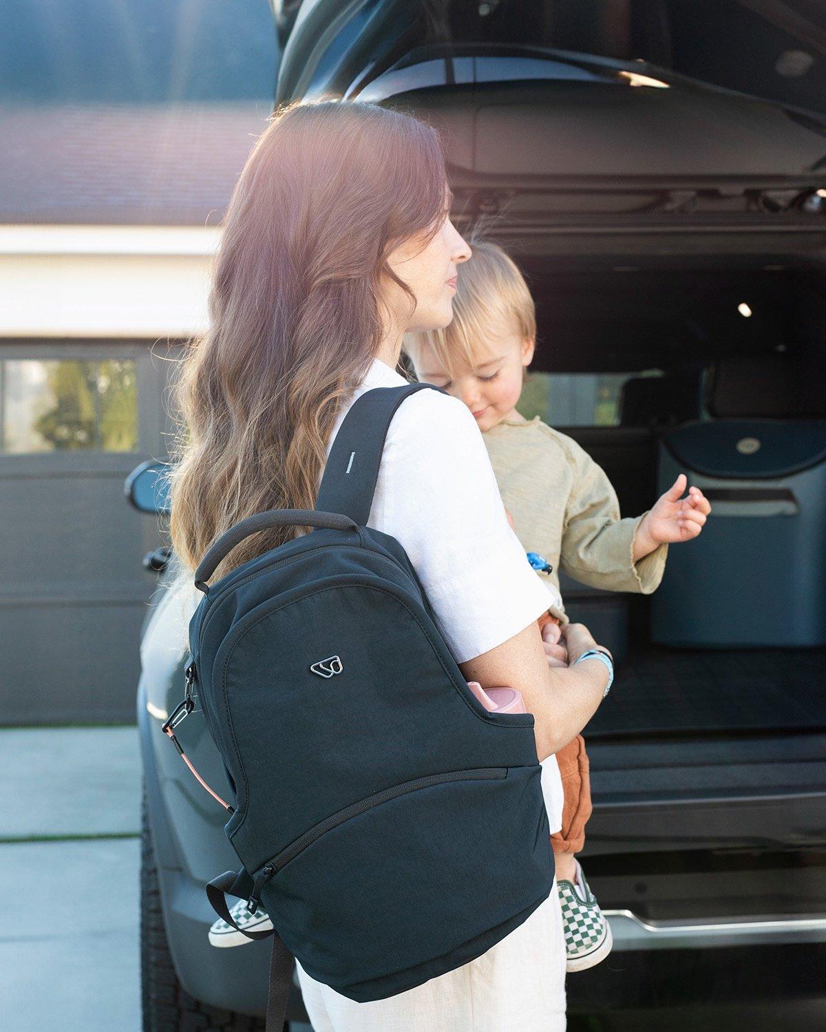 15 Liter capacity with dedicated compartments for diapers, snacks, bottles, and your essentials, so you can find what you need fast—even in the chaos.