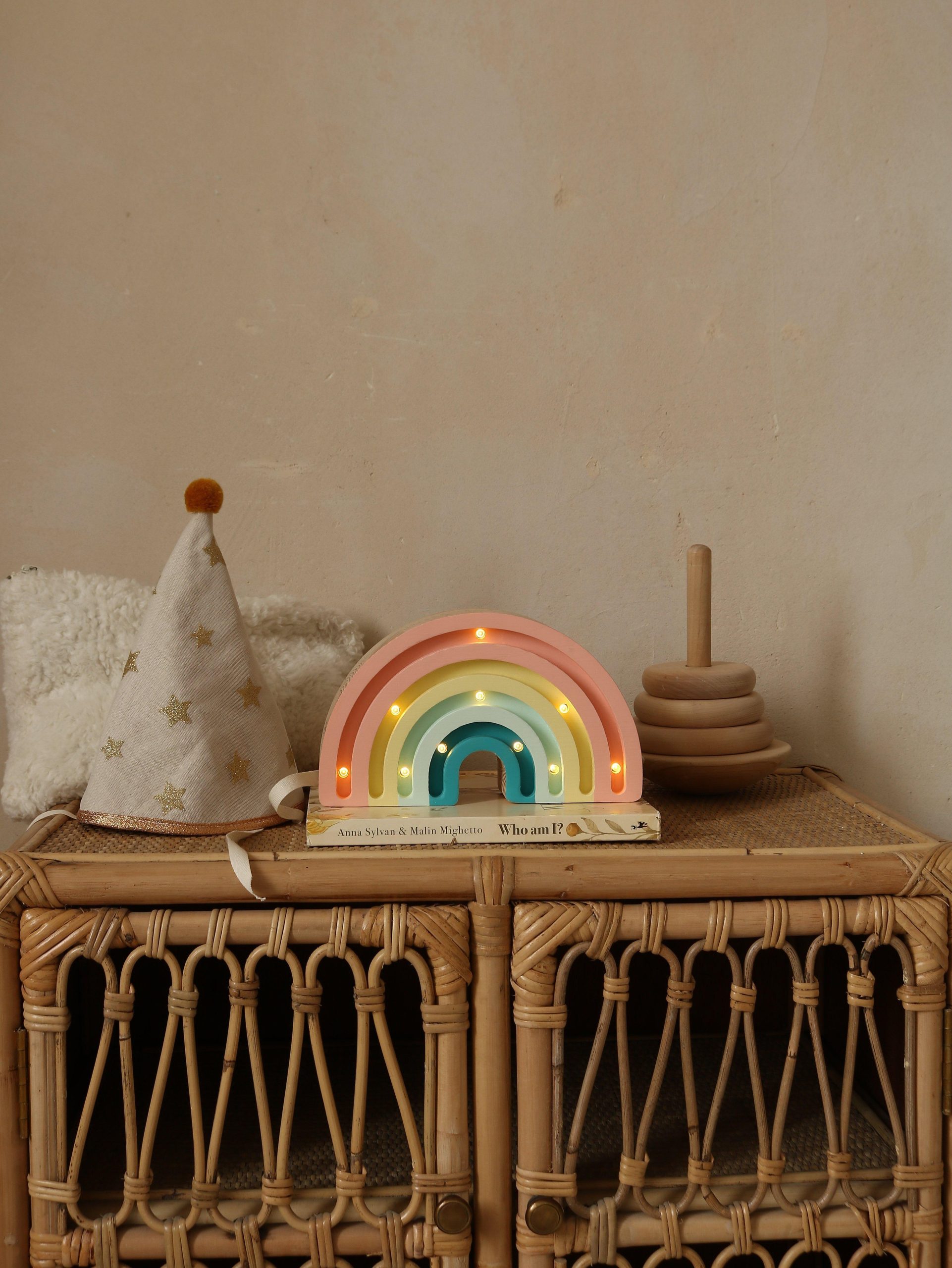 Fits perfectly in any nursery or kids’ room decor, whether sitting bedside, on a dresser, or hung on the wall!