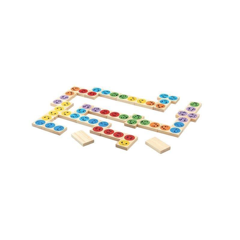 • The PlanToys Mood Dominos is a game that helps you strengthen relationships with loved ones through storytelling. Players are instructed to match tiles based on facial expressions. After a tile is placed, the player proceeds to share a story that corresponds to the emotion on the tile. Mood Dominos includes 28 wooden tiles with 7 different emotions and a cloth bag for storage and travel.