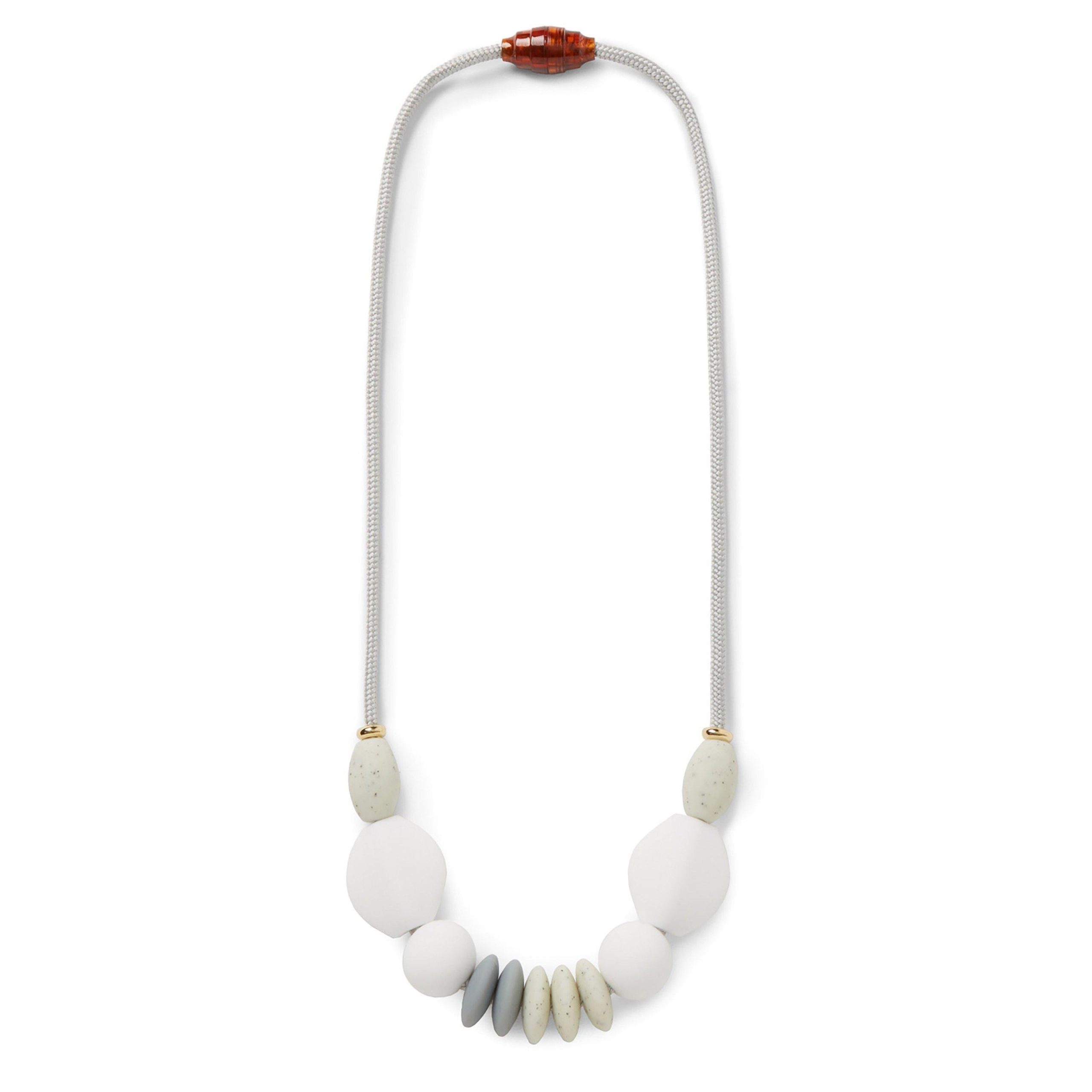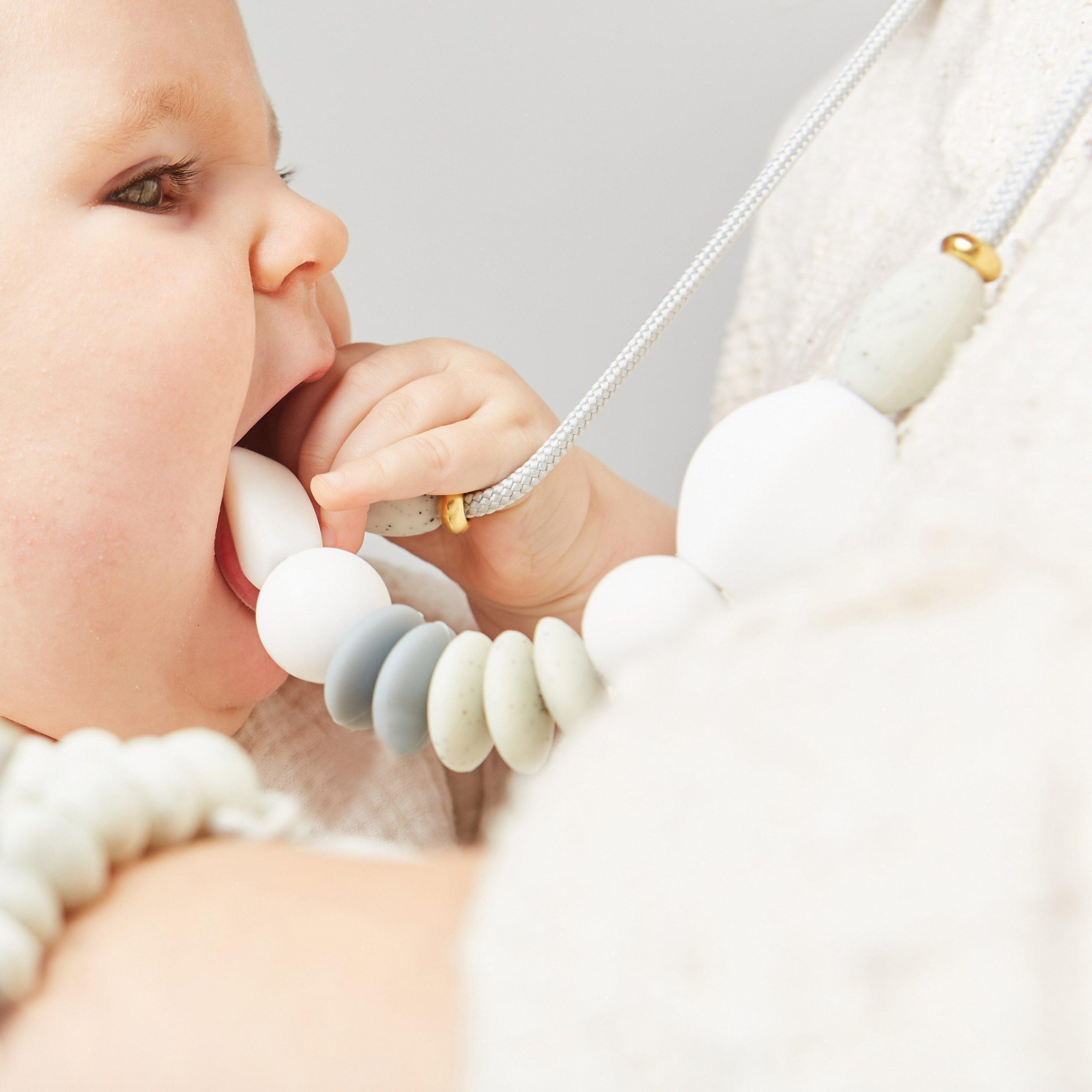 Featuring modern shapes and brilliant colors, our chewable Signature Necklace is a striking statement piece strong enough to withstand daily wear and tear and stylish enough to integrate seamlessly into your wardrobe. Handcrafted with premium materials that have been safety tested, it is the ideal baby-friendly accessory for your drooly mini me.