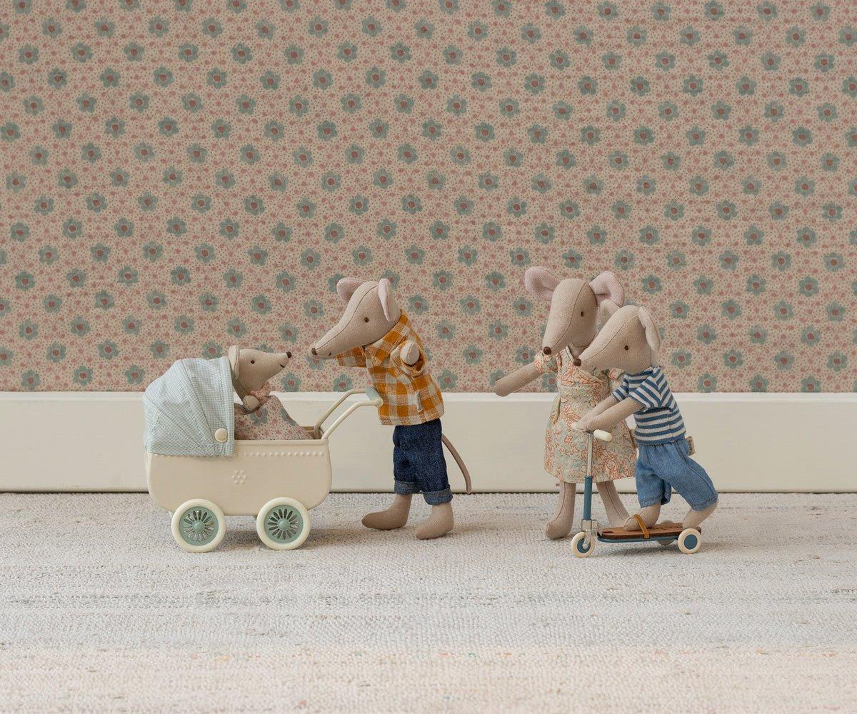 A classic Maileg item; Mum mouse in a light dress. This mouse fits furniture and accessories in size mouse. Buy more clothes separately. Clothes in size mum/dad fits this mouse.