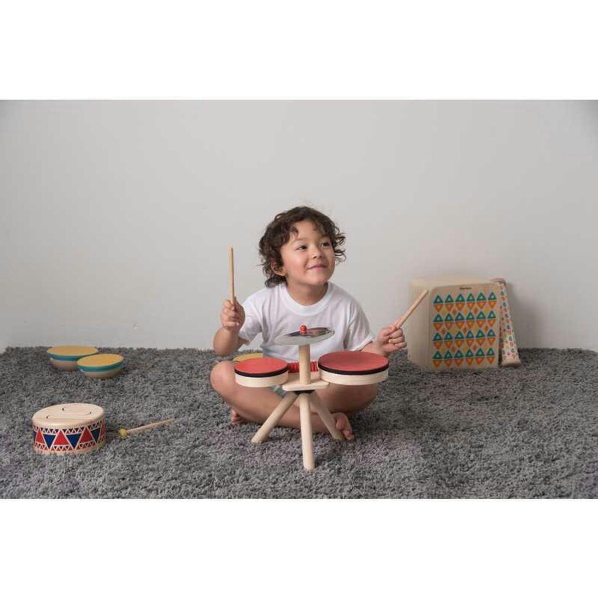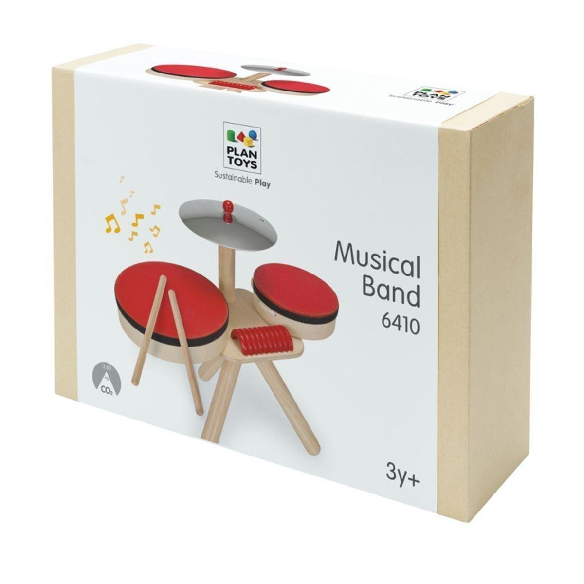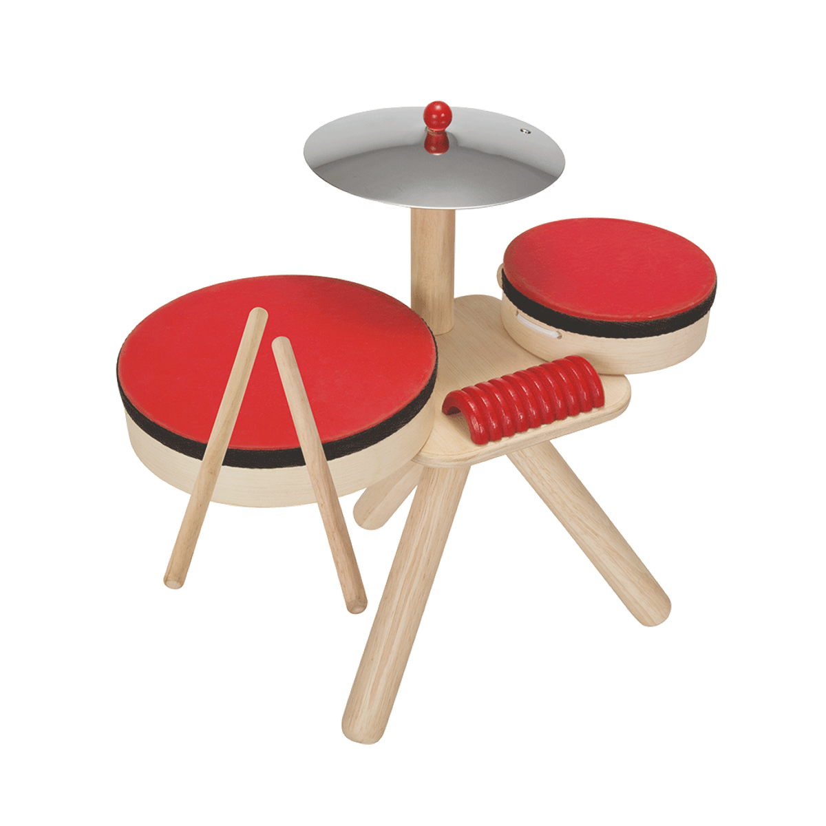 Is your little one ready to take center stage? This Musical Band Includes 2 differently-sized drums, a pair of drumsticks, a cymbal and a guiro. The set stands over 13 inches tall and is perfect for an active toddler.Additionally, the drumheads are made from fabric coated with natural rubber, making for a gentle yet realistic musical experience.