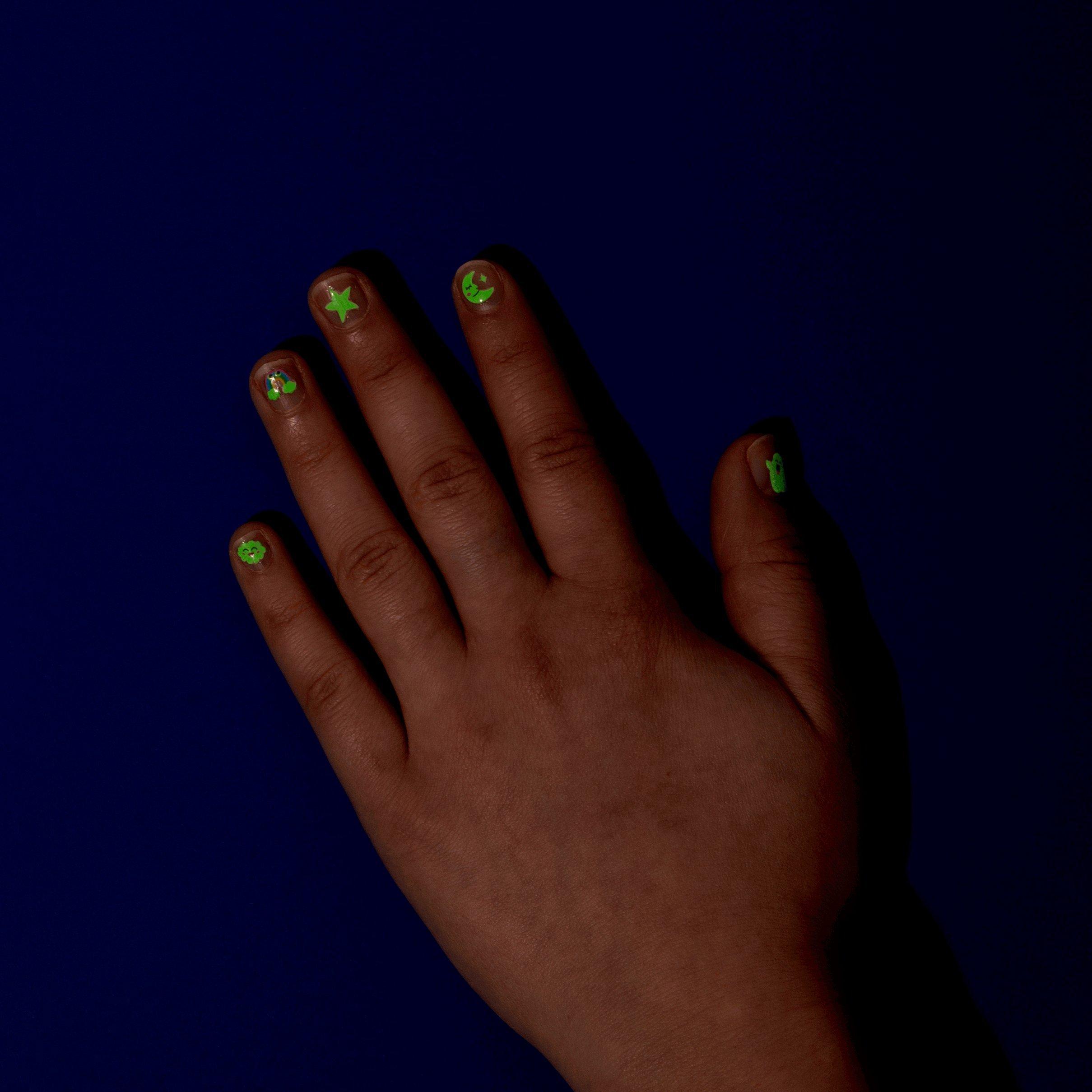 • They come with 200 glow in the dark nail stickers that are easy to use!