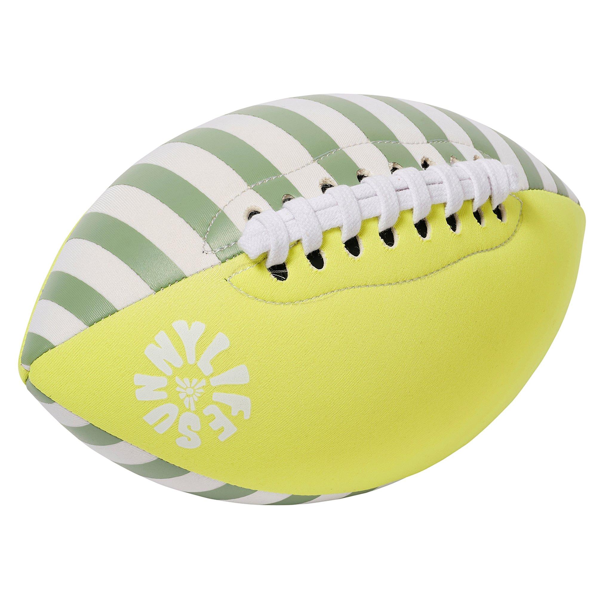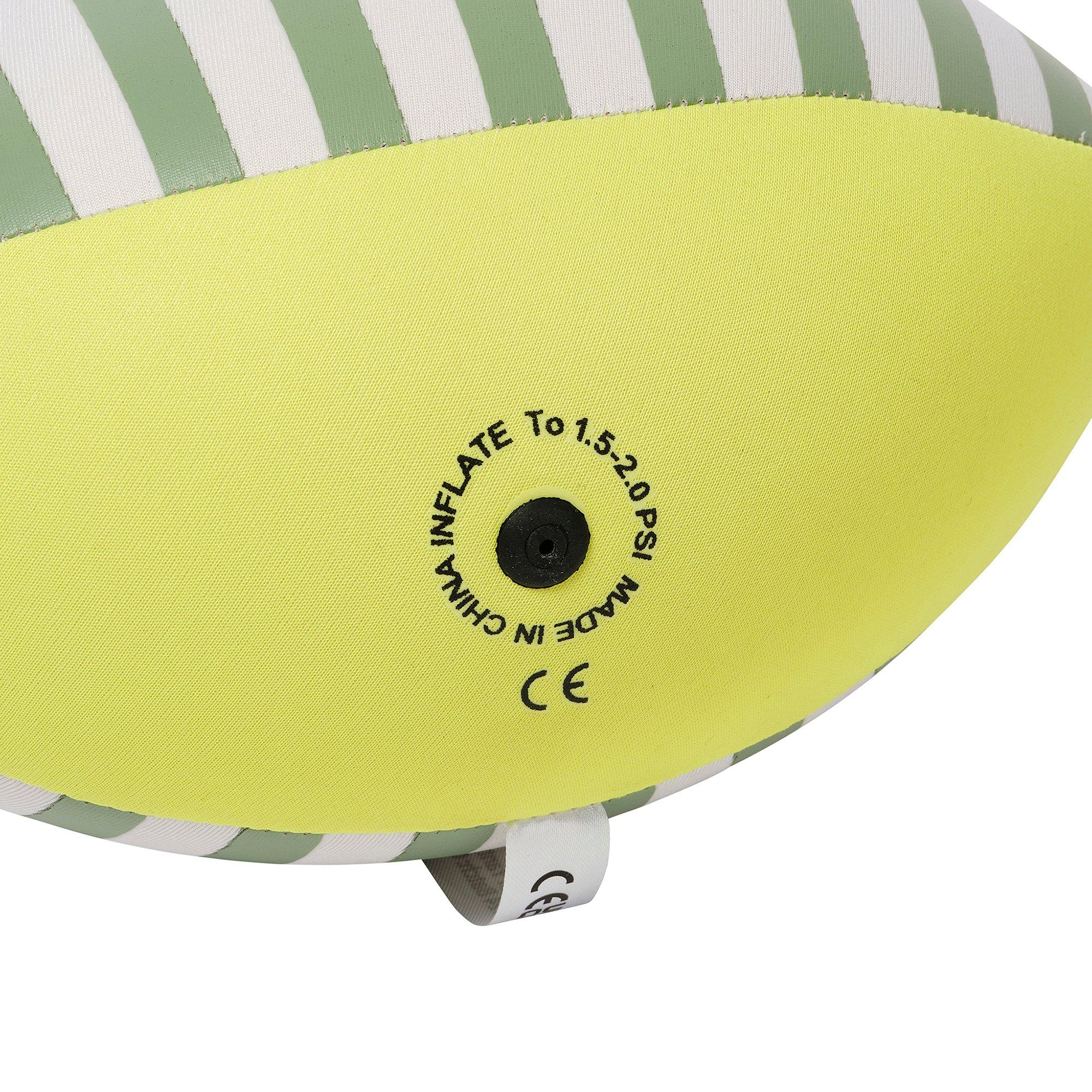 STYLISH CITRUS STRIPE DESIGN: Featuring a bold citrus yellow with sage and white stripes, this neoprene football brings a fun and vibrant touch to beach games, pool play, and outdoor adventures for kids and adults alike.