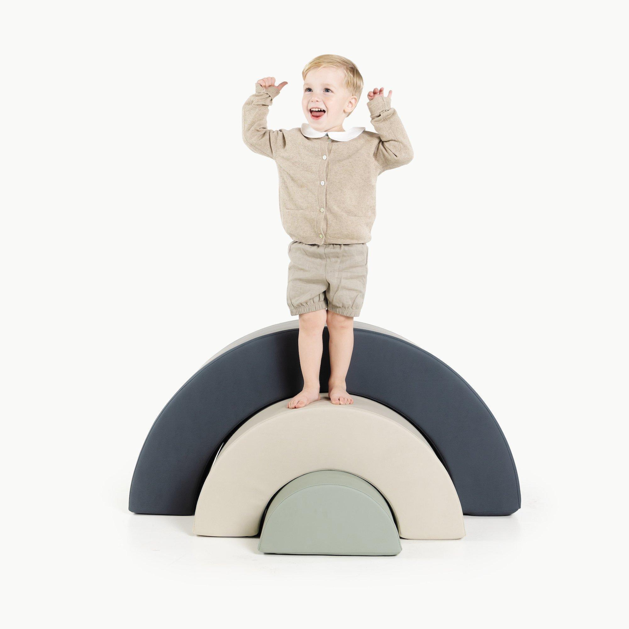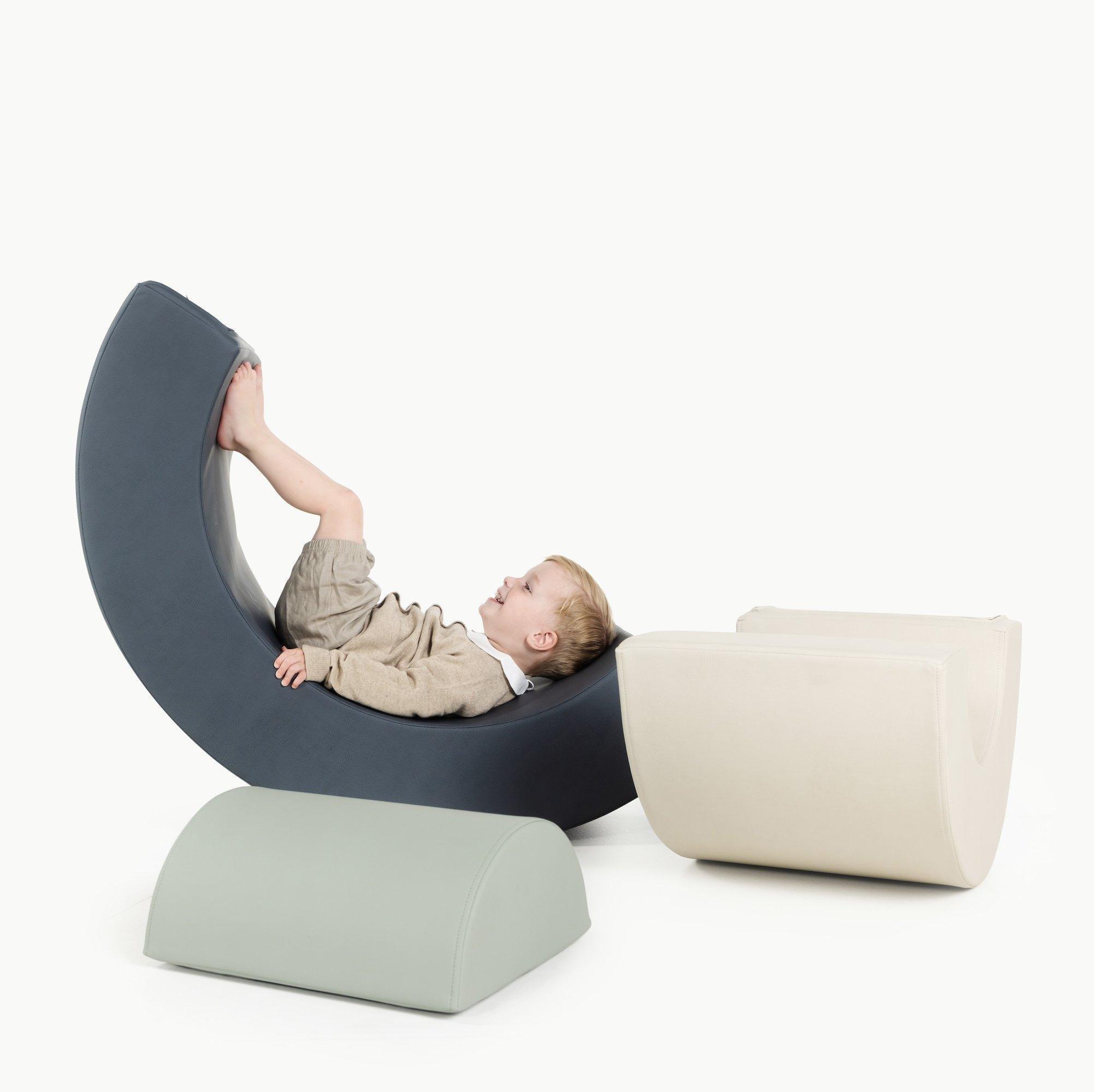 • Seesaw, swing, stomp + slide — inside. Your new foul-weather, get-the-wiggles-out friend.