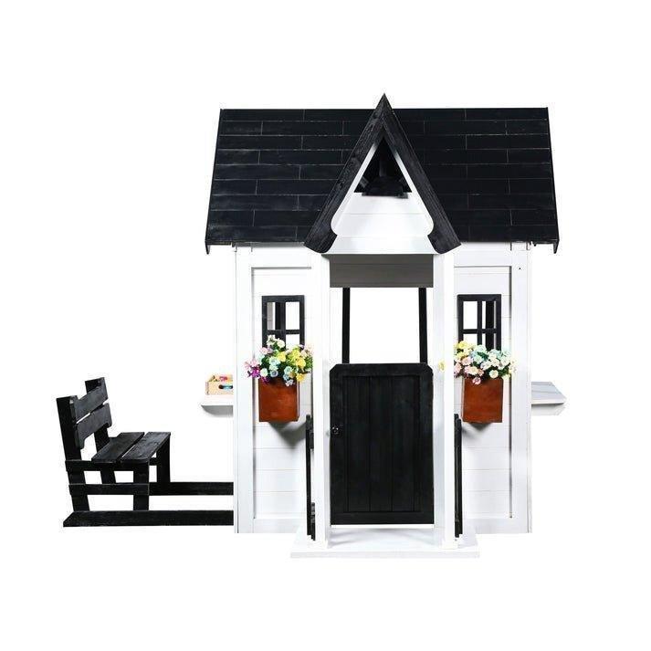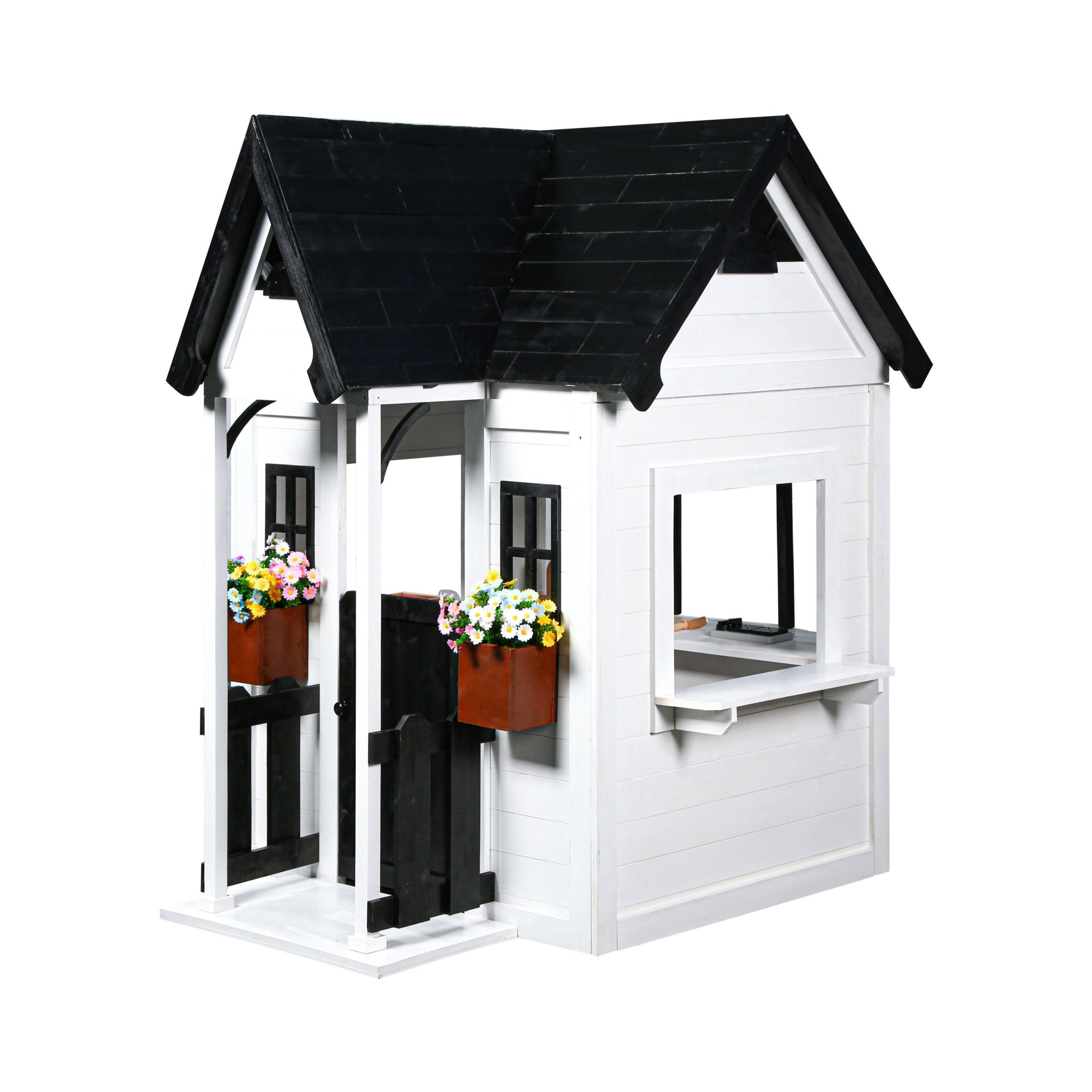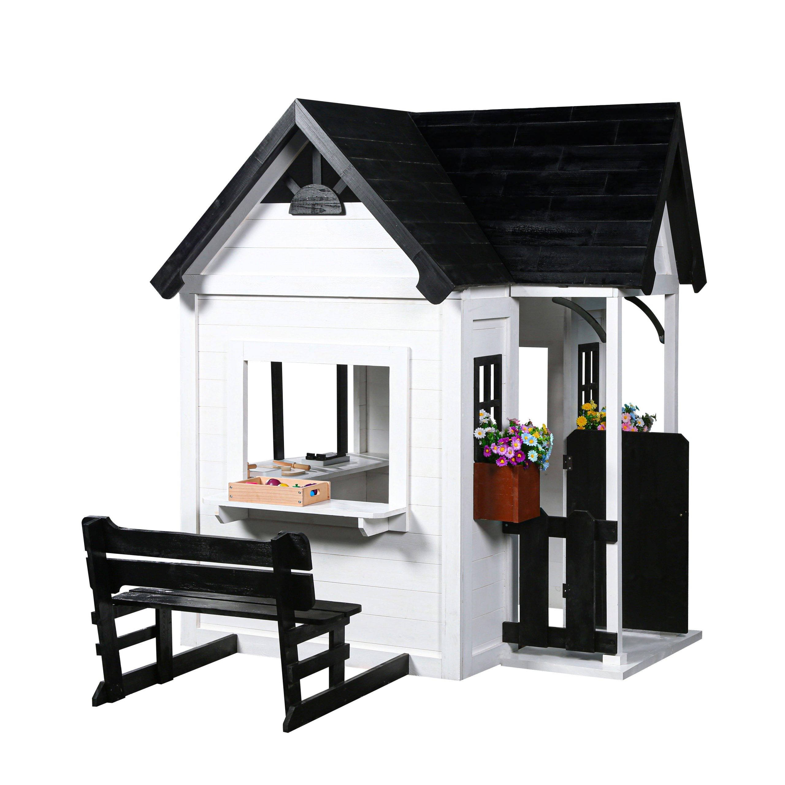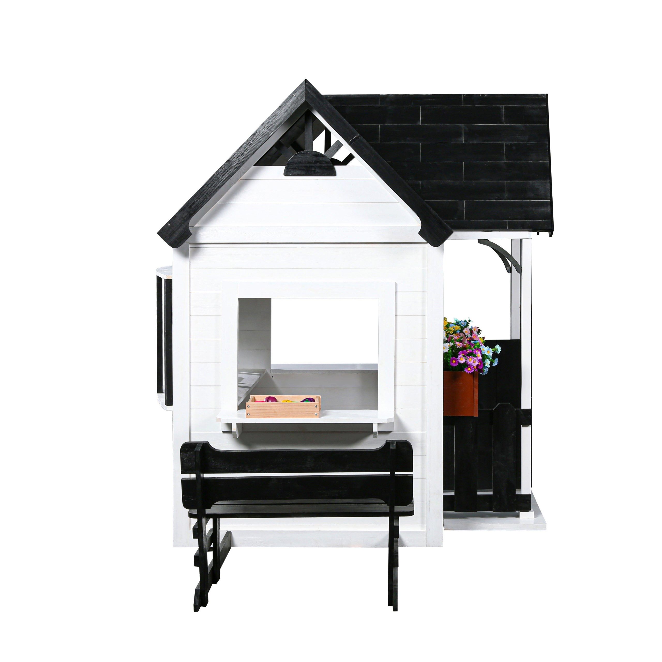• 2MamaBees Oceano Playhouse will create hours of sensory play while also helping your little one explore the world of imagination. The beautiful white and black farmhouse design will create a stunning addition to any backyard. The Oceano Playhouse includes a built-in kitchen, beautiful wooden play food and cedar window boxes to create your own potted garden.