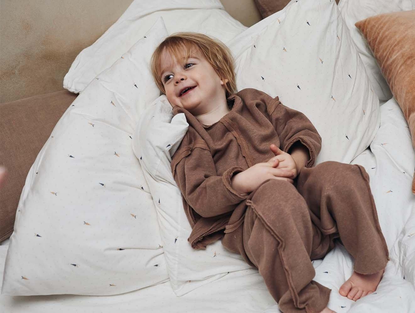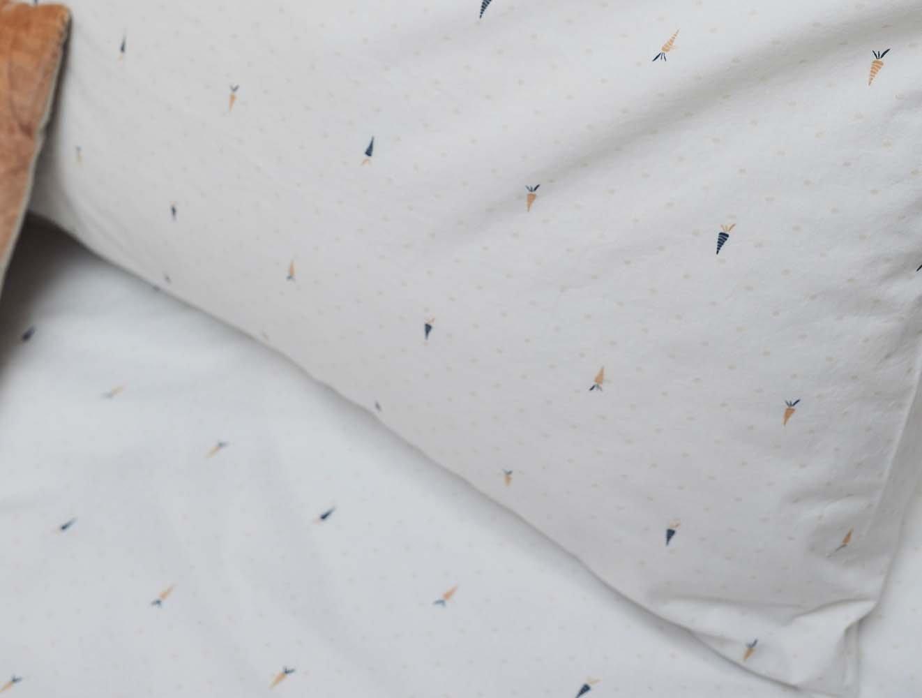 When we designed Carrotology, we were thinking of how much fun it is to play in mud, plant a garden with grandma, go to a petting zoo or a farm, rolly-polly on green grass and feel the sun-swept breeze on your face. This collection is inspired by our connection with nature and the immense joy that is derived from it. The pattern features white base, with small beige polka dots.