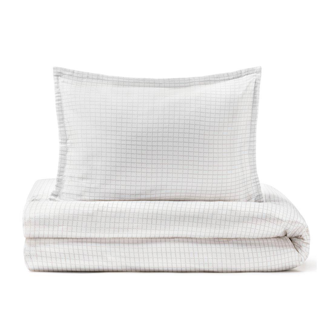 A classic double grid on a soft cotton sateen, this neutral crib set will match any nursery.