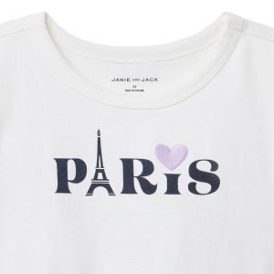 • Inspired by our favorite city, this soft cotton jersey top features dolman sleeves, a screenprinted Paris graphic and an embroidered heart detail too.
