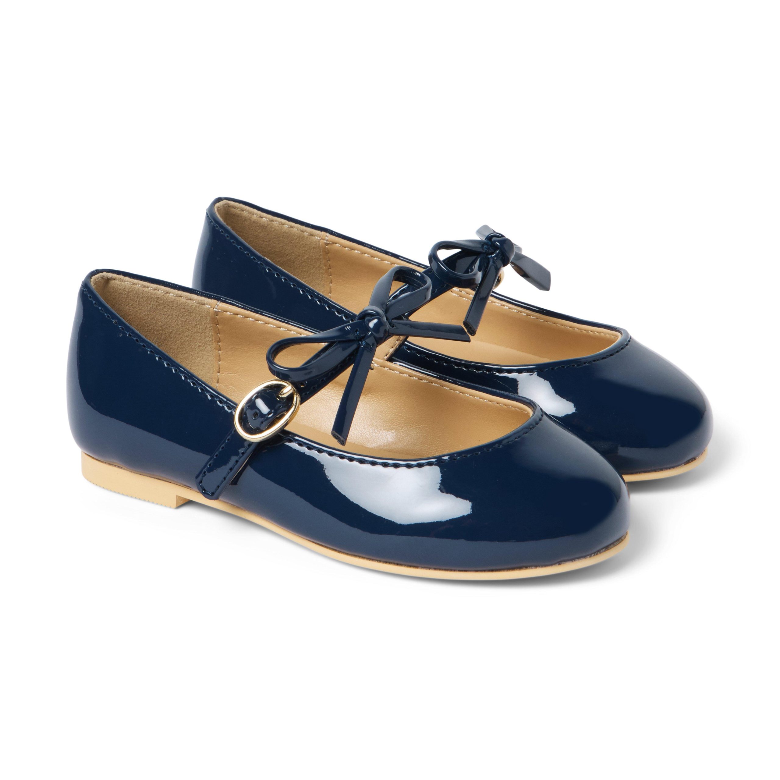 • Our classic patent ballet flat dresses up every look. Detailed with a bow, of course.