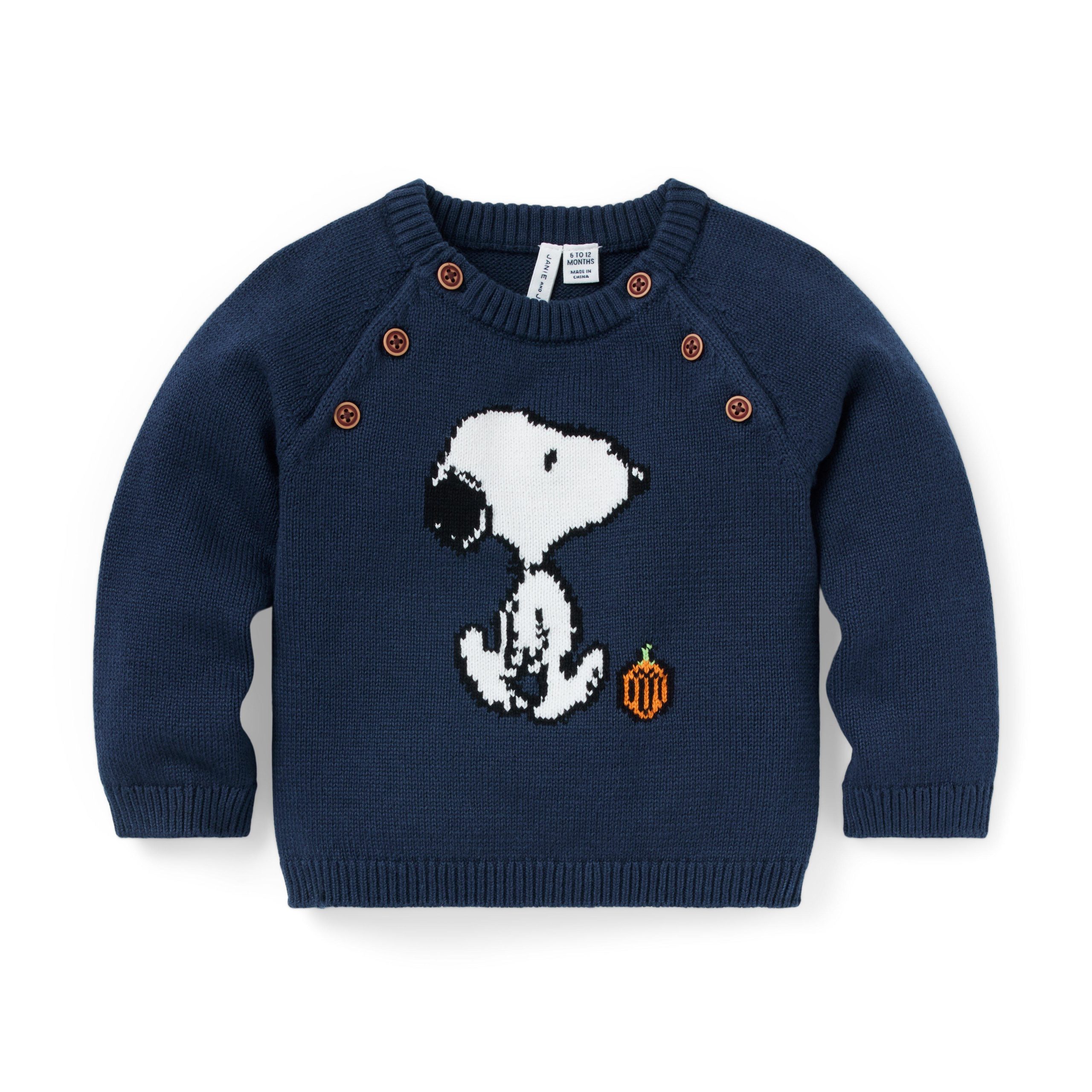 • For baby’s first autumn looks, reach for our sweater in soft, pure cotton. With an intarsia-knit Snoopy and pumpkin design.