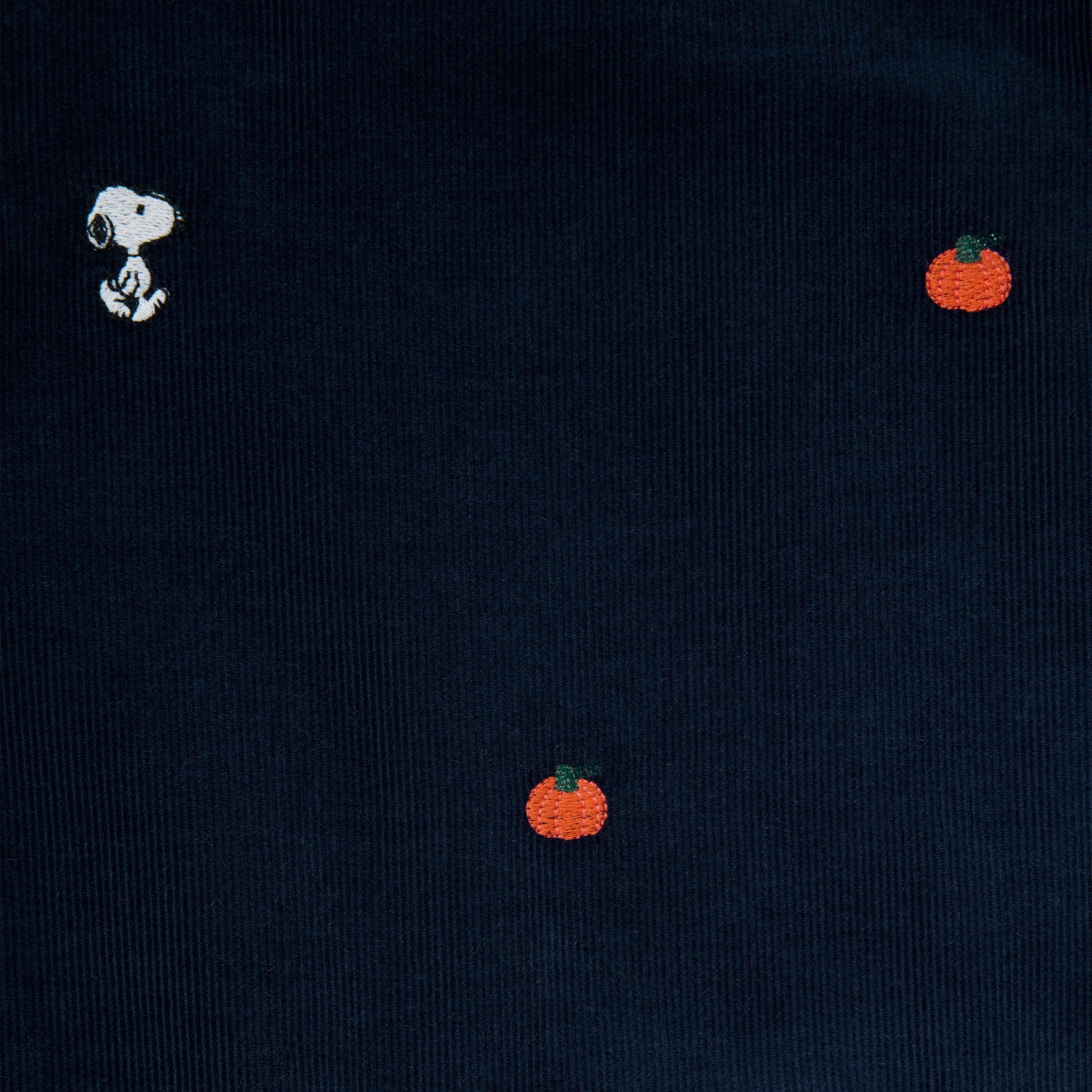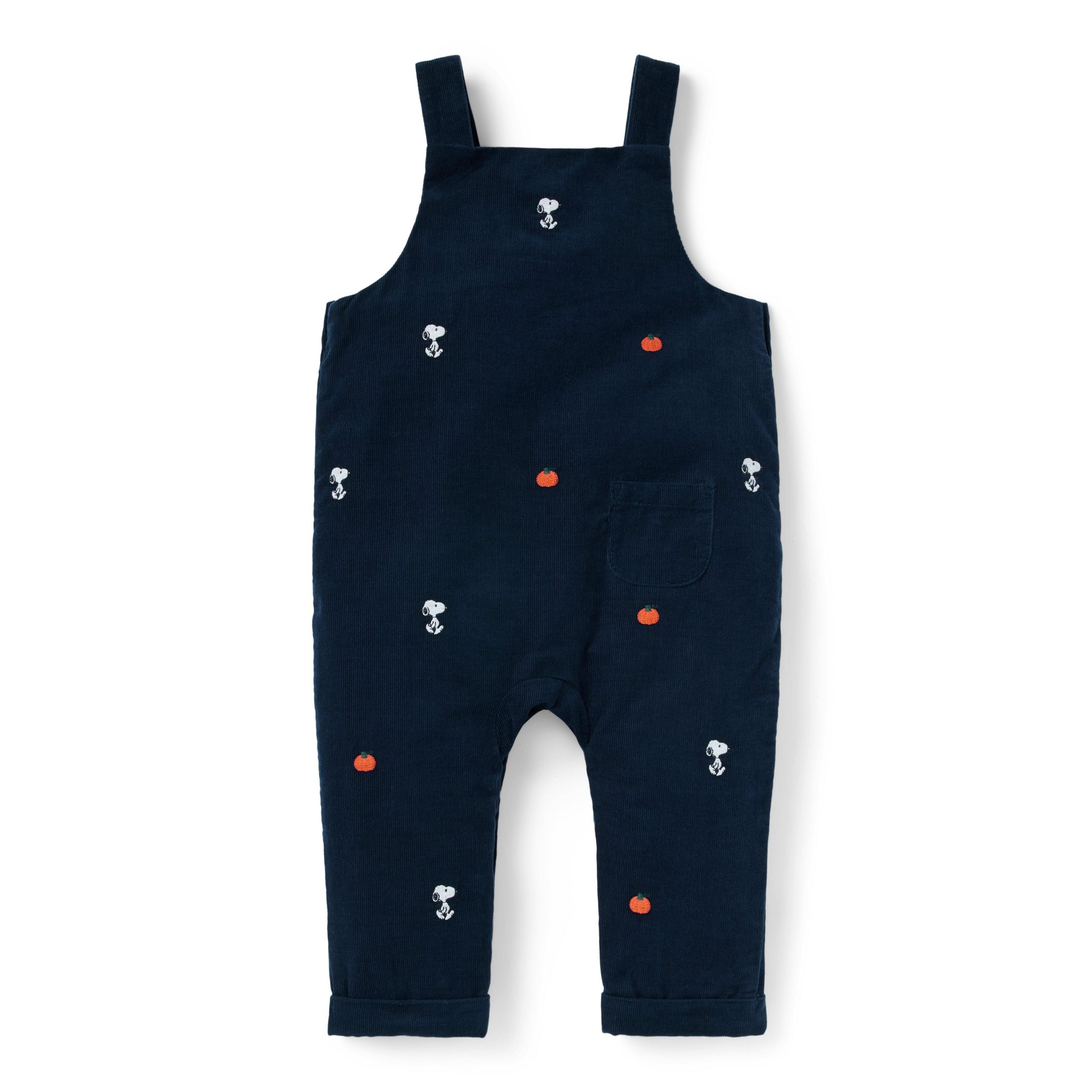 • For a one-and-done look as easy as pumpkin pie, reach for our overall in pure cotton corduroy. With allover embroidered Snoopy and pumpkin icons, buttons at the straps and a little back pocket, just because.