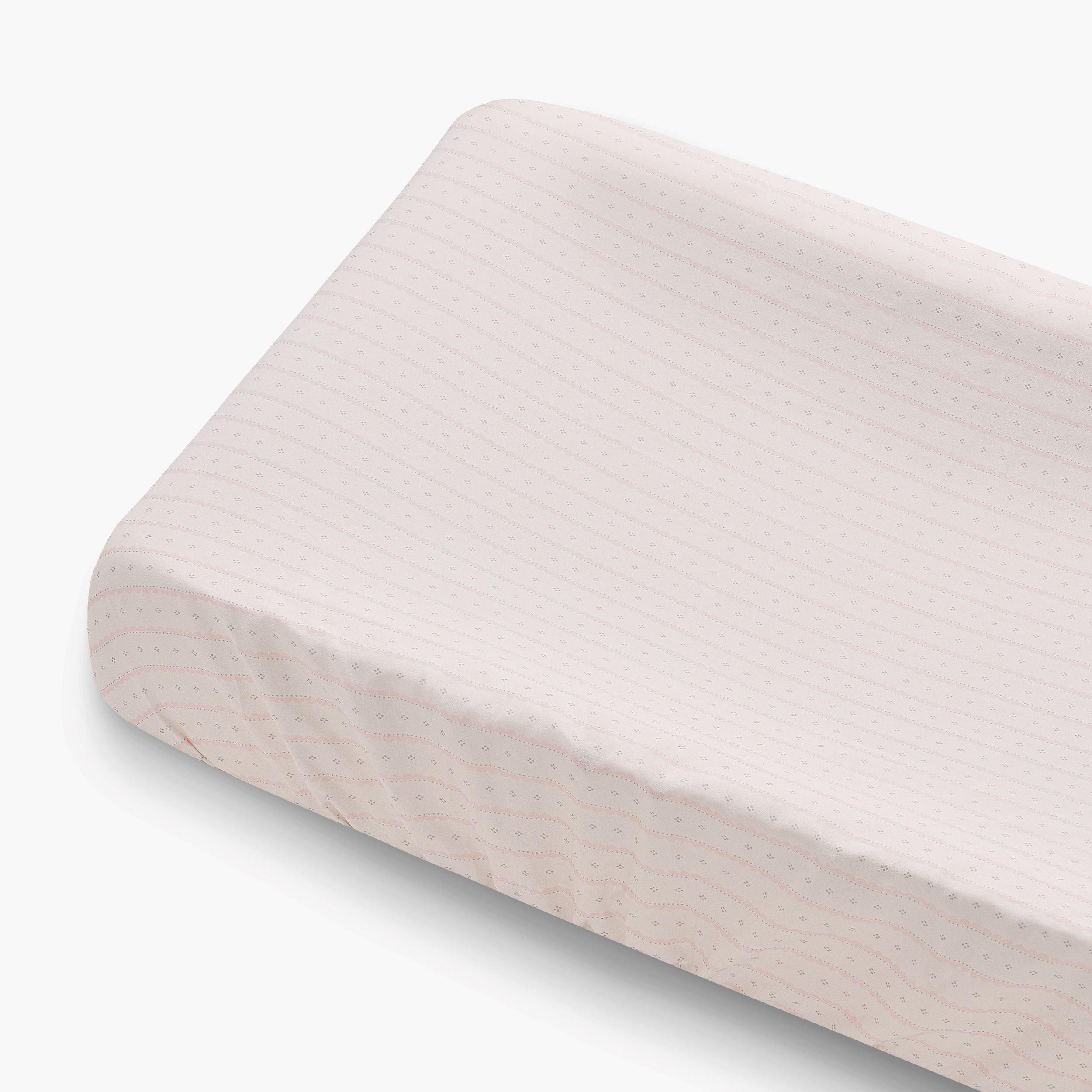 • To create this extra soft diaper changing pad cover, we used Cotton Sateen—a weave that offers a silkier, softer feel compared to regular cotton. It’s lofty, breathable, and keeps your baby comfortable during every diaper change. Additionally, it’s OEKO-TEX certified, ensuring it’s woven from the purest materials and free of harmful toxins. It also pairs nicely with a matching crib sheet, completing the cozy and cohesive look of your nursery.