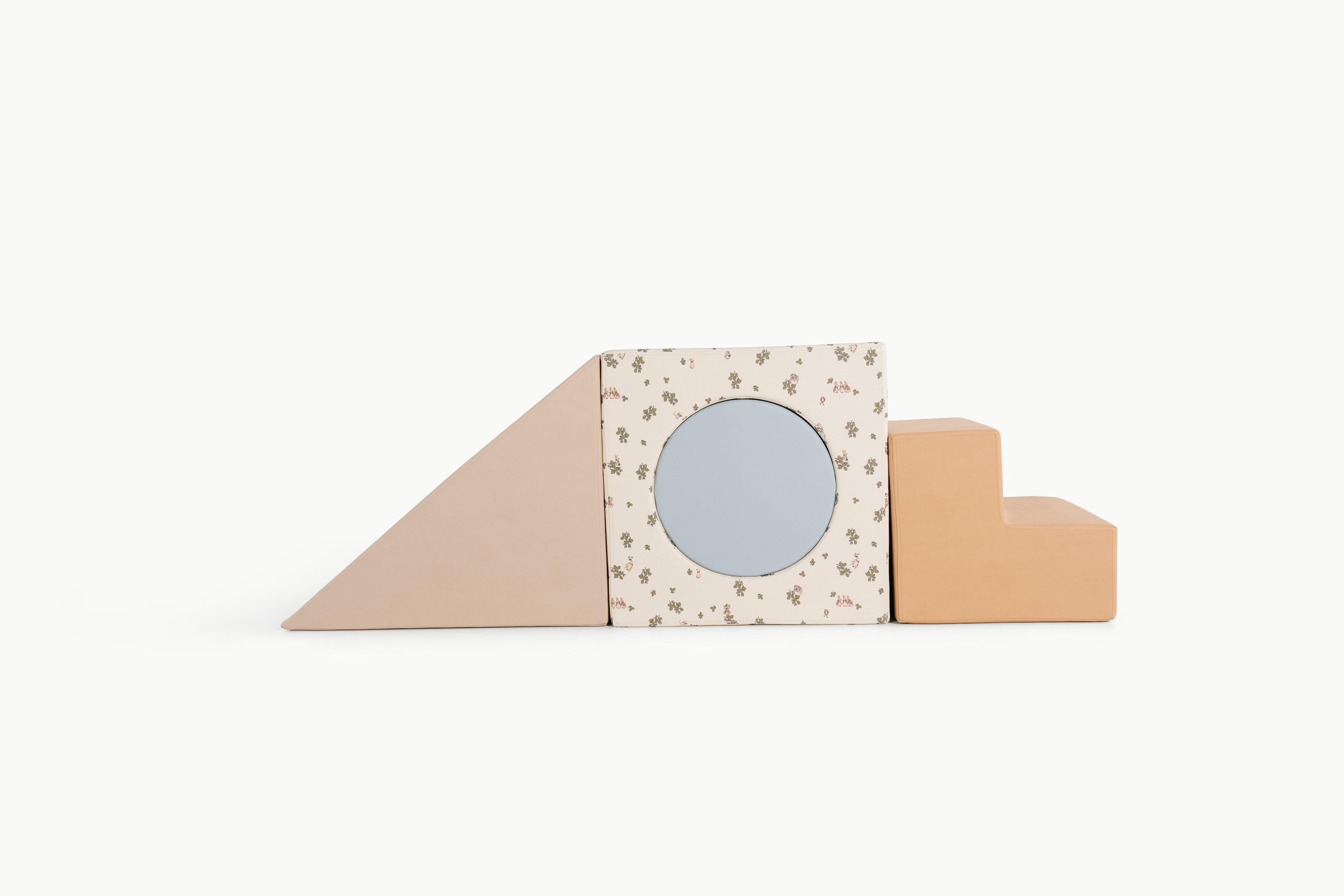 Ramp: 29.5in x 16in x 23.5in; Steps: 17.5in x 16in x 15.5in; Cylinder: 15in x 16in; Block: 23.5in x 16in x 23.5in; Assembled: 70.5in x 16in x 23.5in