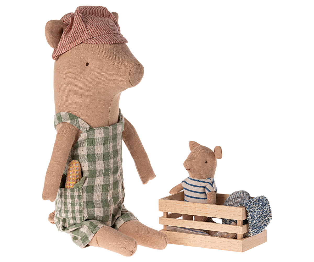 Oink Oink – say hello to the sweetest pig. This pig comes in a beautiful dress and scarf and can sit on its own. Create your own pig family by adding more family members from the collection.