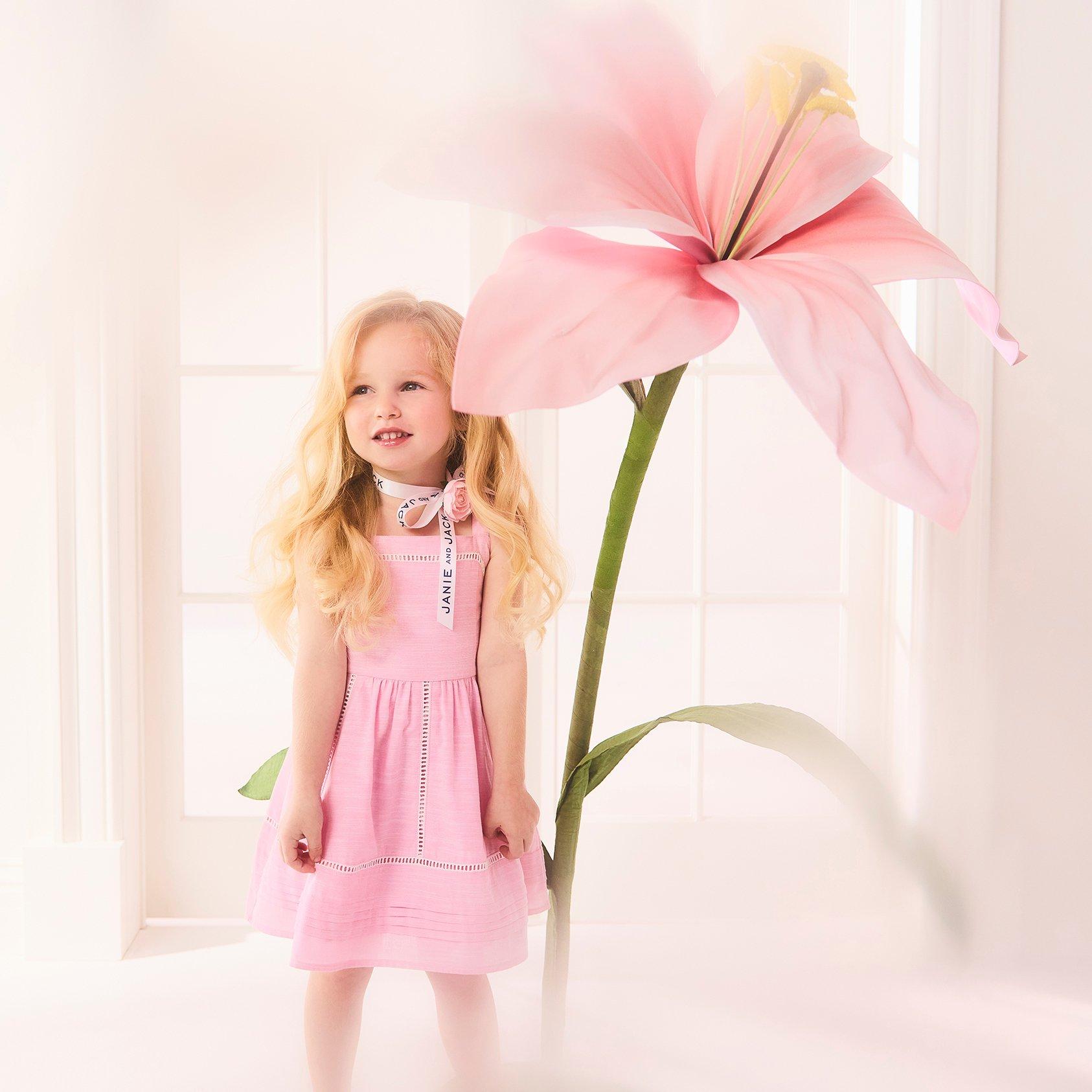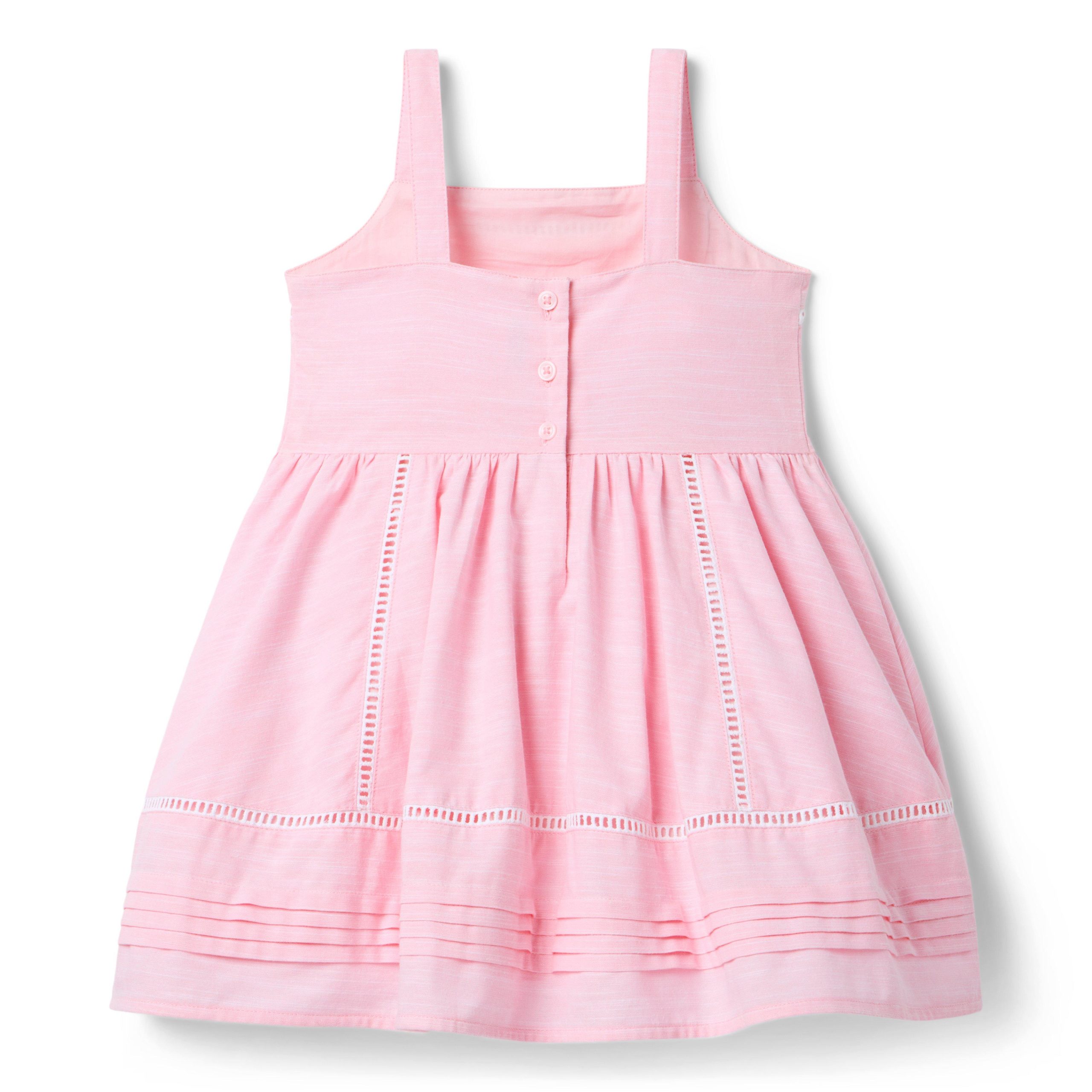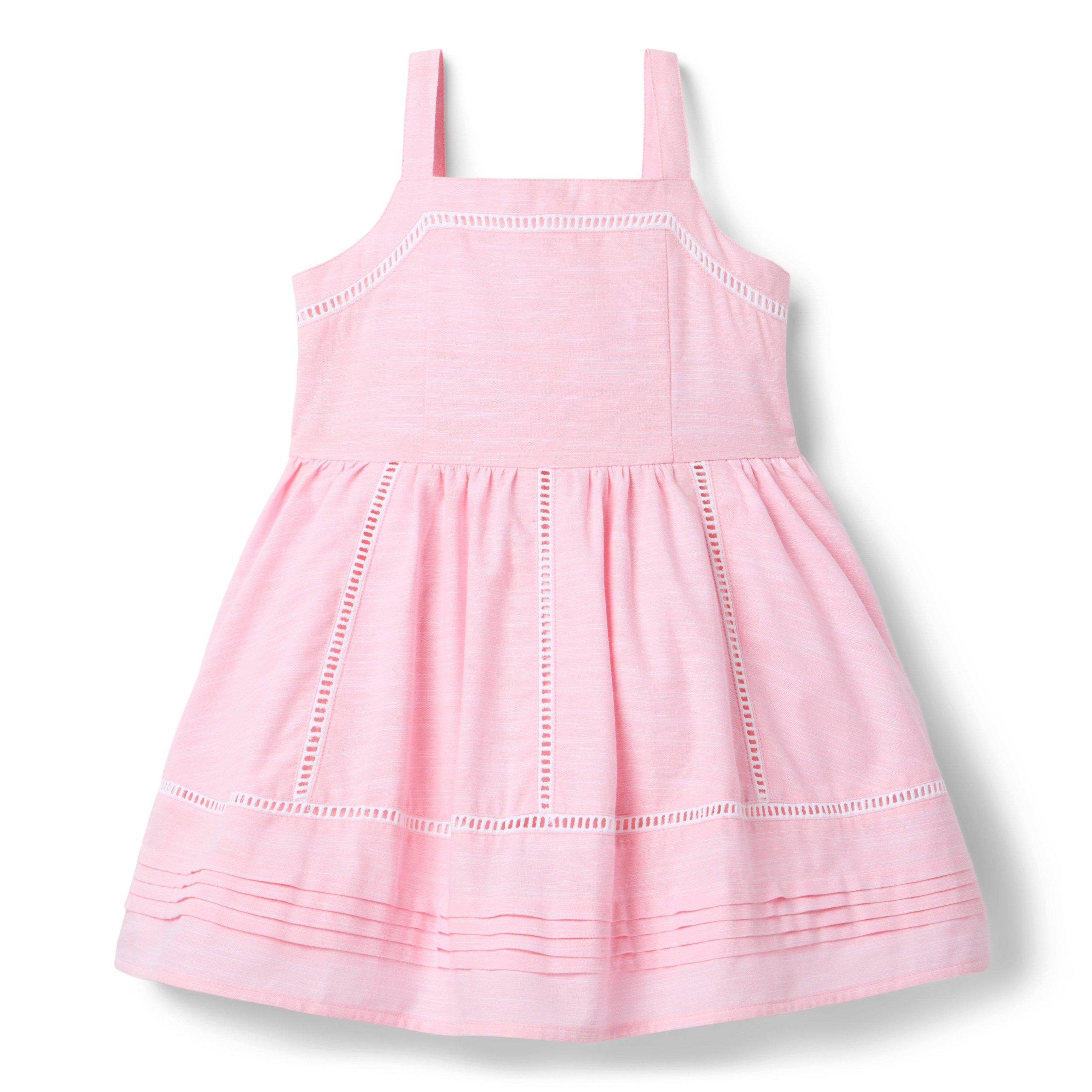 • Think pink for spring celebrations. Our breezy dress features pintuck details and ladder trim too.