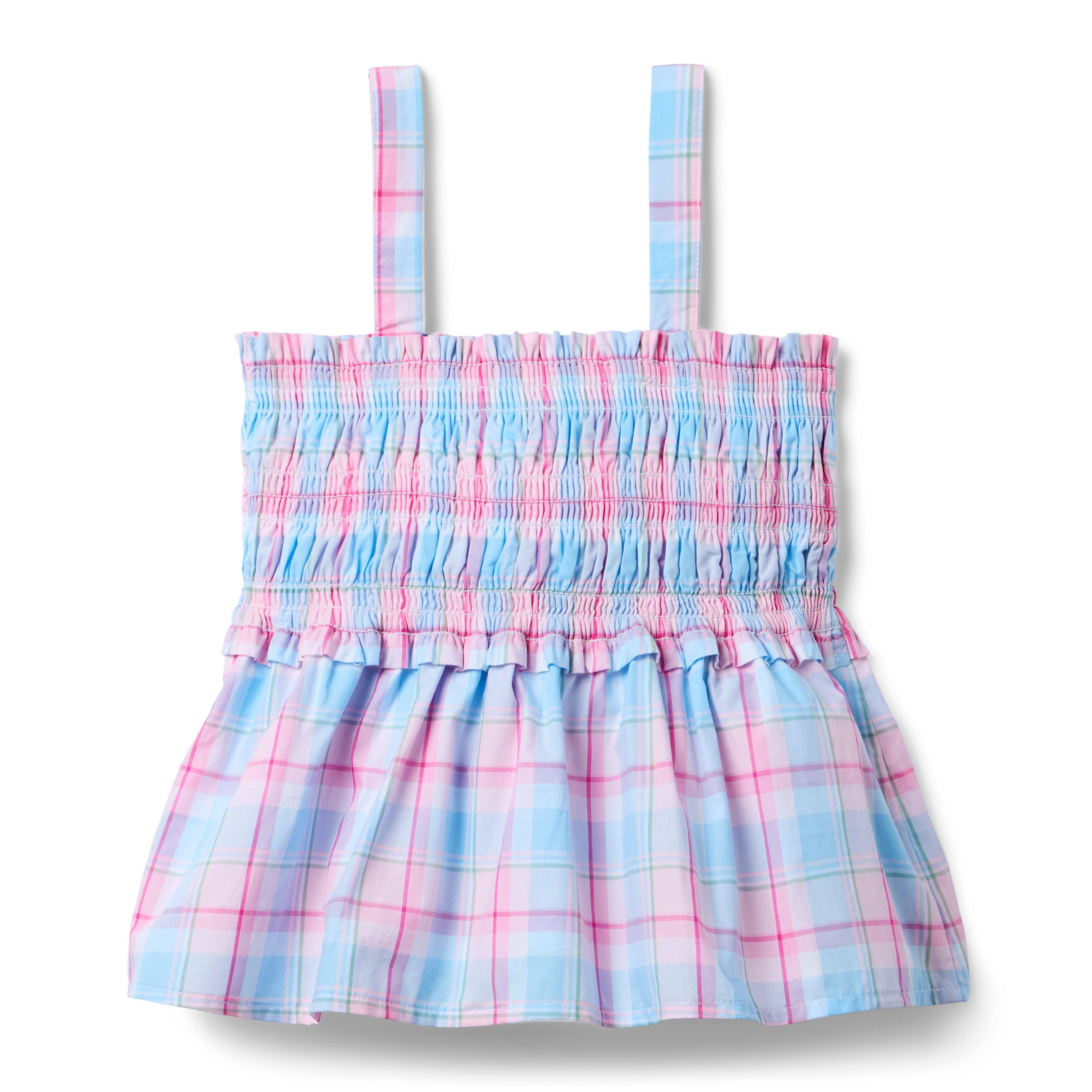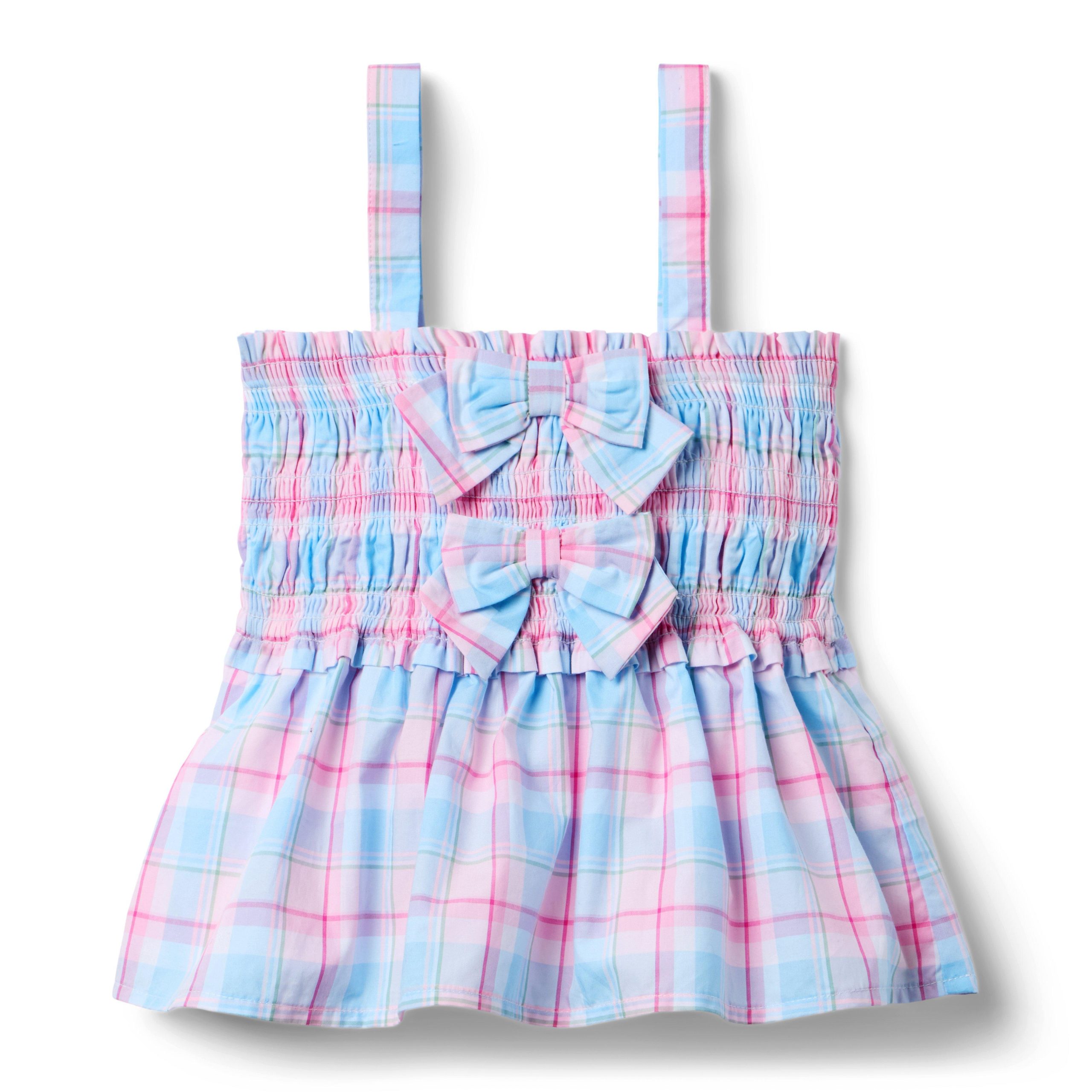 • Our smocked top is twice as nice with double bows. Designed in a peplum silhouette.