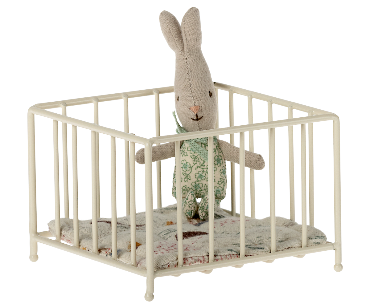 • It’s nap time! Now your My-sized Maileg friends will have a place to sleep. The My Playpen comes with a cute cushion to keep your babies comfy and safe.