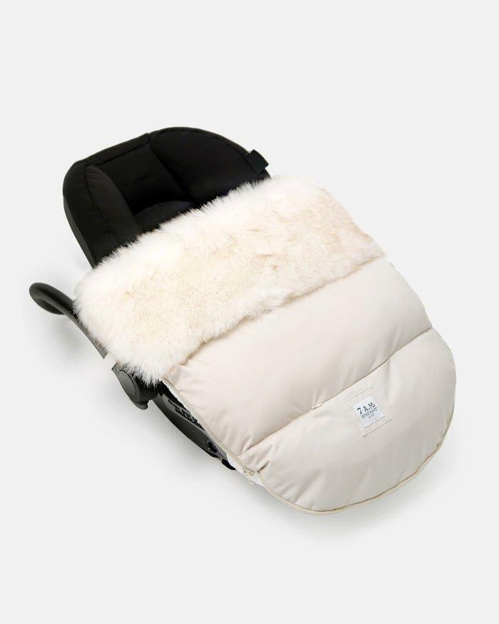 The outer shell is water repellent, and the poly insulation and plush lining is extra soft effectively blocking out any cold air. On warmer days, remove the faux fur trims for a lighter-weight footmuff. Bonus: the entire thing (except for faux fur trims) is machine washable and dryable.