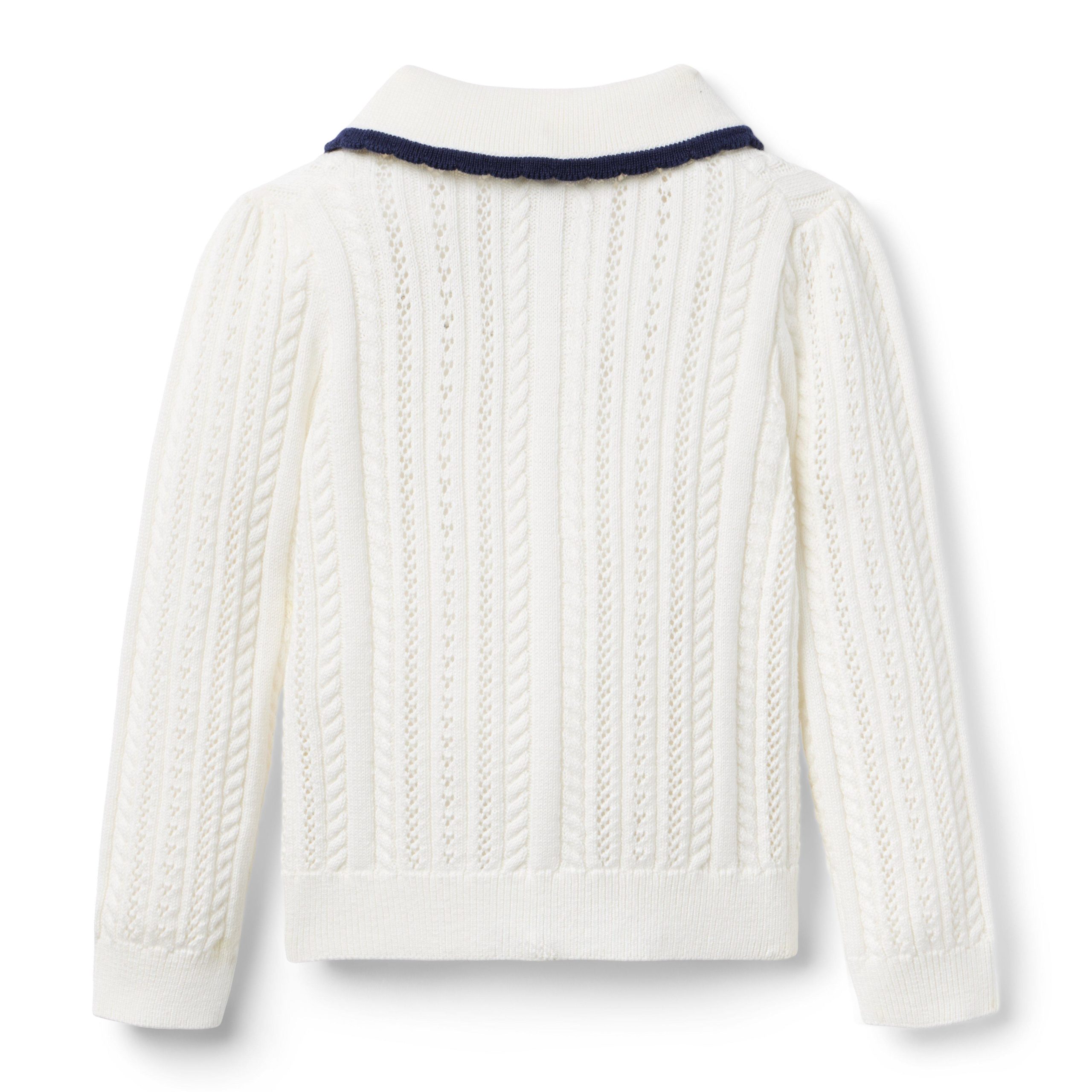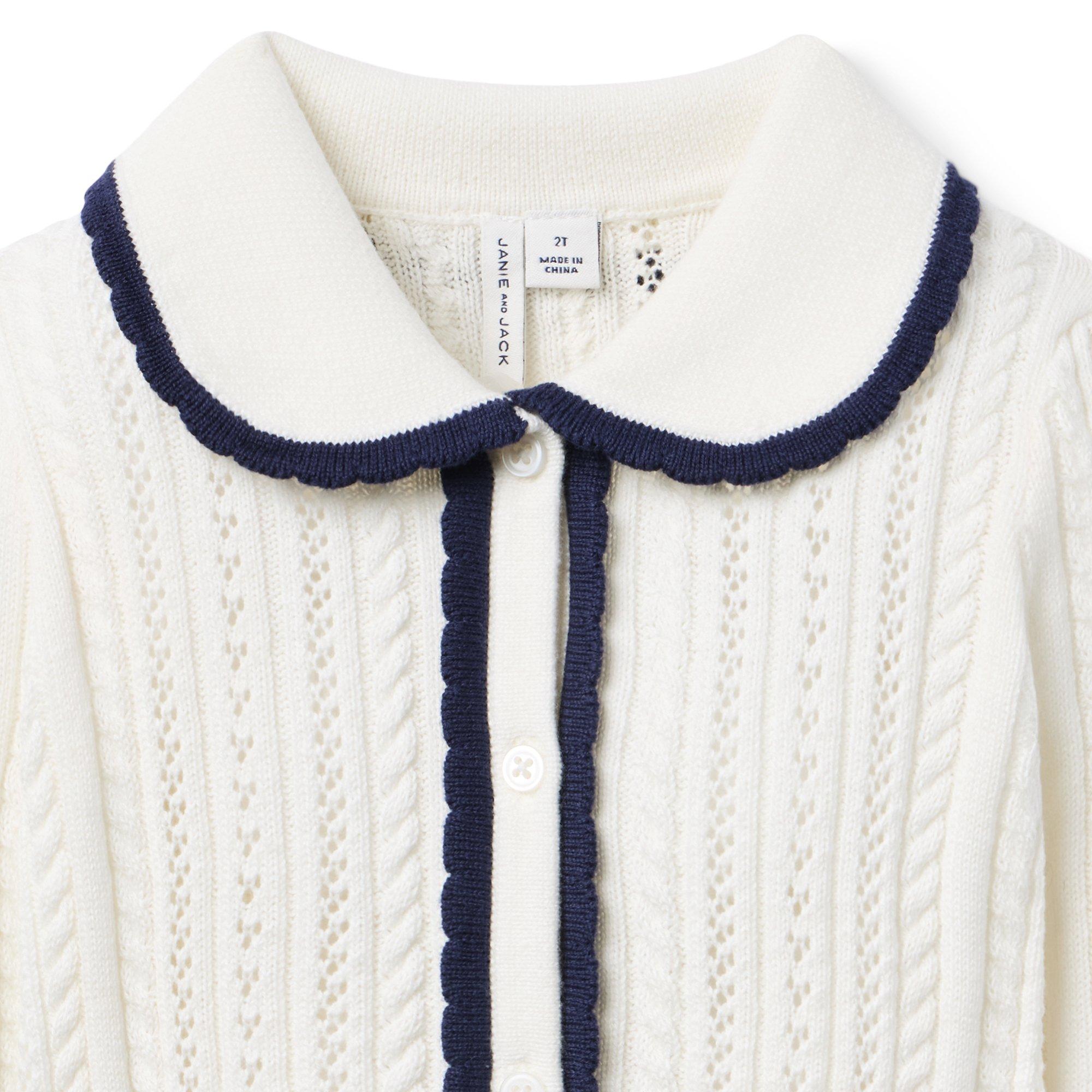 Pointelle Scalloped Trim Cardigan