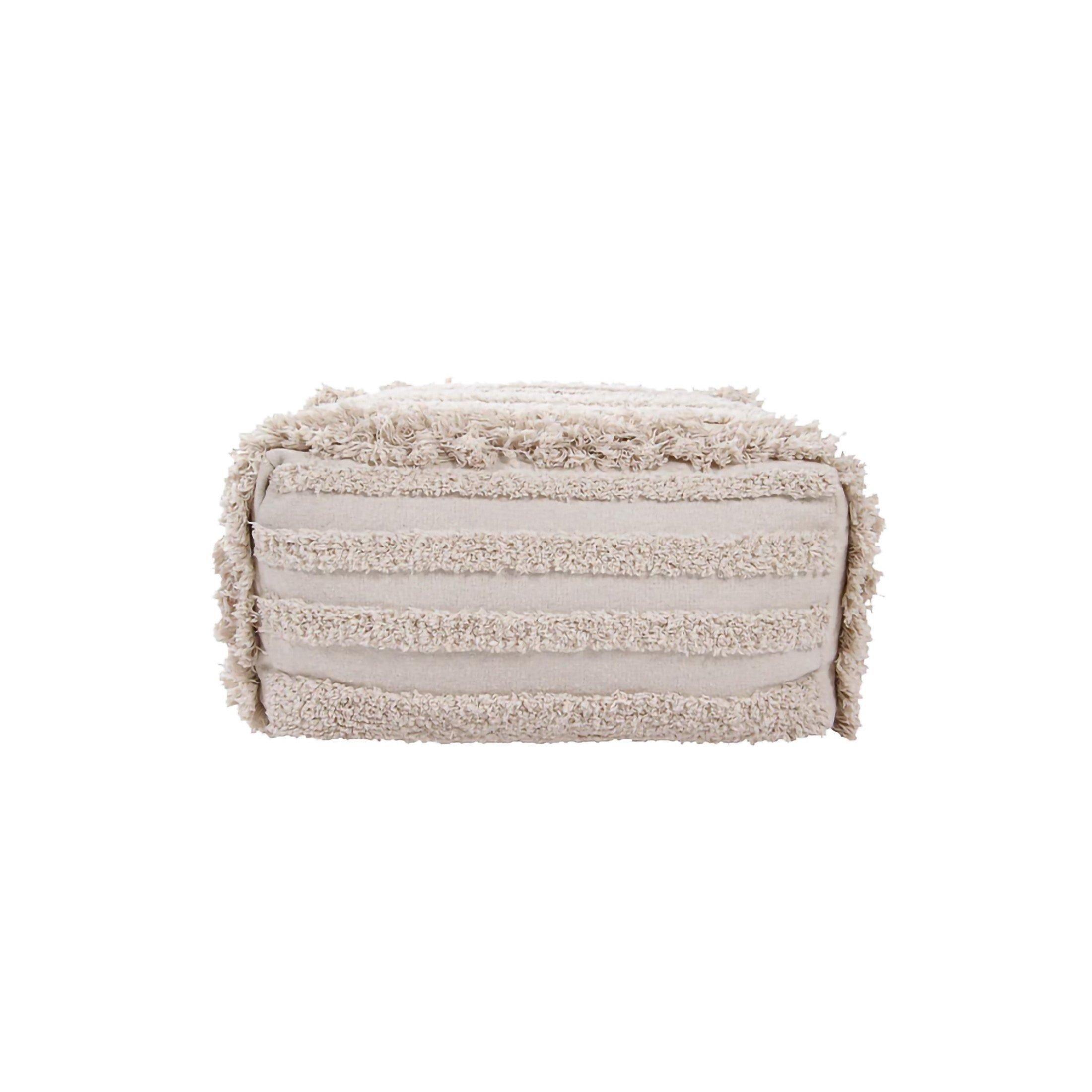 Pouf with canvas base in Natural color, and rows different textures. Cover is removable with a zipper, and inside cushion is filled with small balls of poliestireno.
