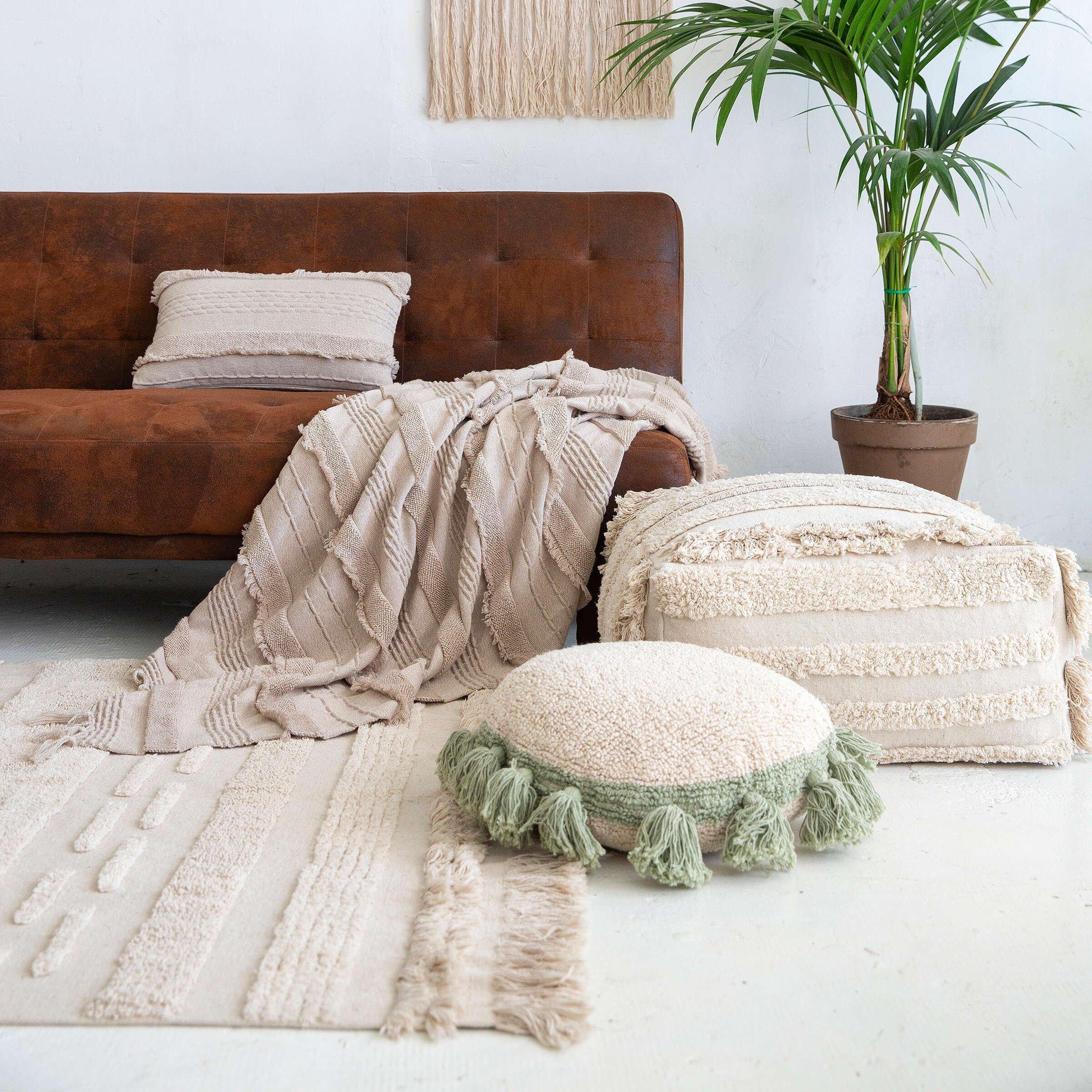 Comfort: Make your space comfortable and cozy with our soft decor essentials. From cushions to poufs and rugs, each piece is handcrafted from natural materials like cotton and wool, ensuring both comfort and sustainability.