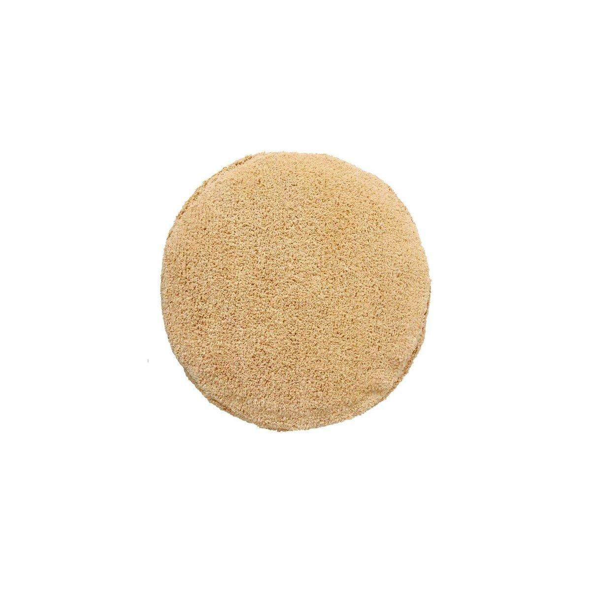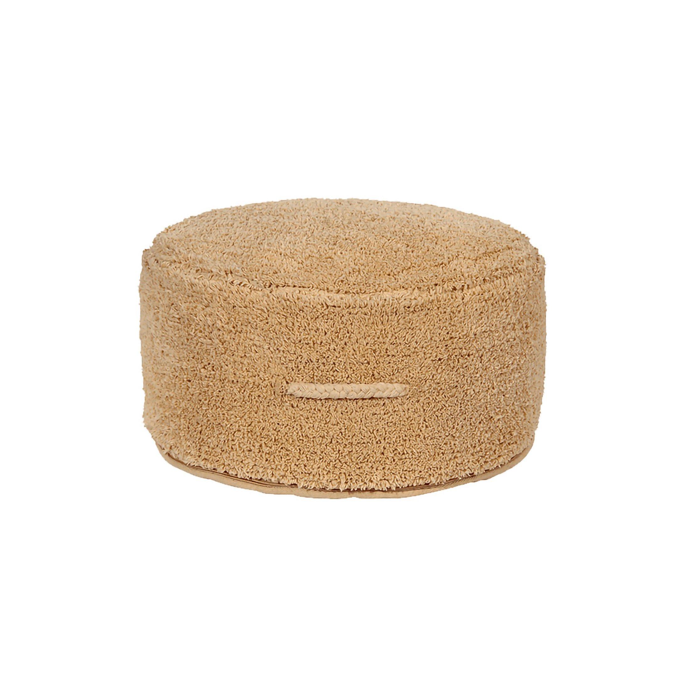 • Round pouf in Honey color with a handmade braid in matching color as a handle. Top and sides covered with soft rug pile, bottom part in cotton canvas, and finished with a zipper. Inside removable filler with polystyrene pearls.