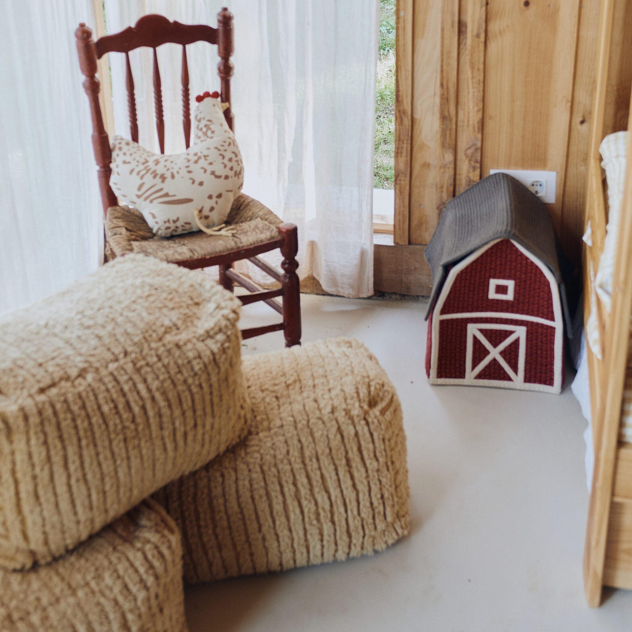 • This fluffy pouf is inspired by hay bales on the farm! Handcrafted from soft